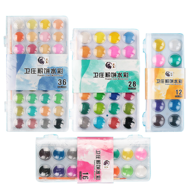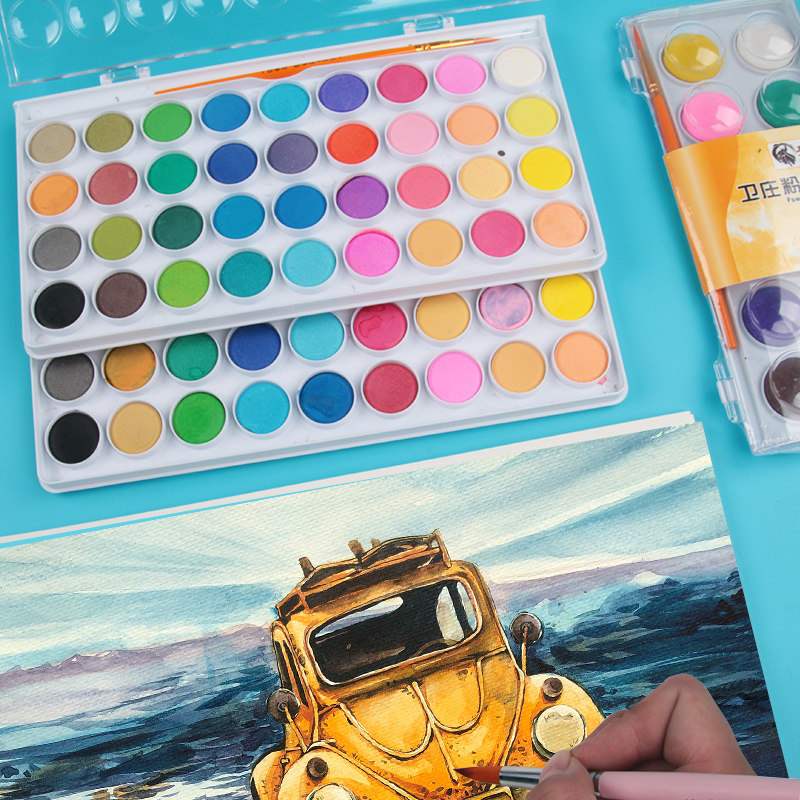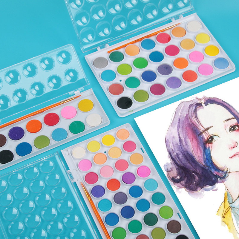便携式36色固体水彩颜料套装初学者手绘水彩粉饼画水彩画套装