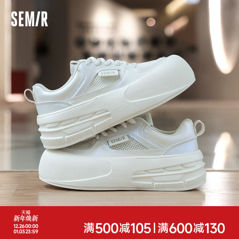 Semir女鞋厚底小白鞋女款2025秋冬新款网面透气网鞋运动休闲板鞋