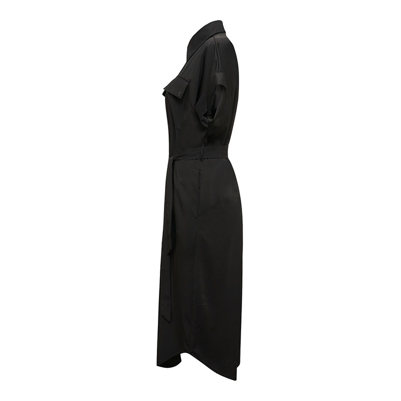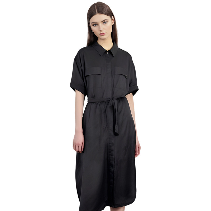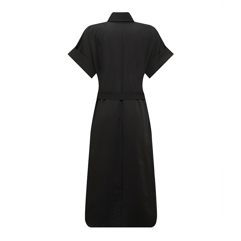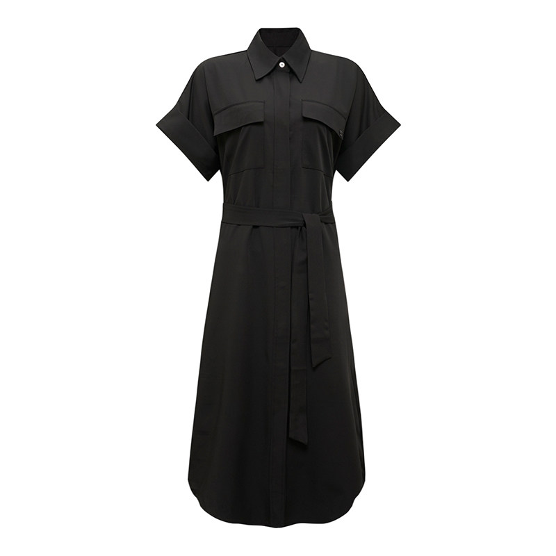 COCOBELLA简约气质黑色收腰极简风连衣裙女优雅短袖长裙FR3033-2
