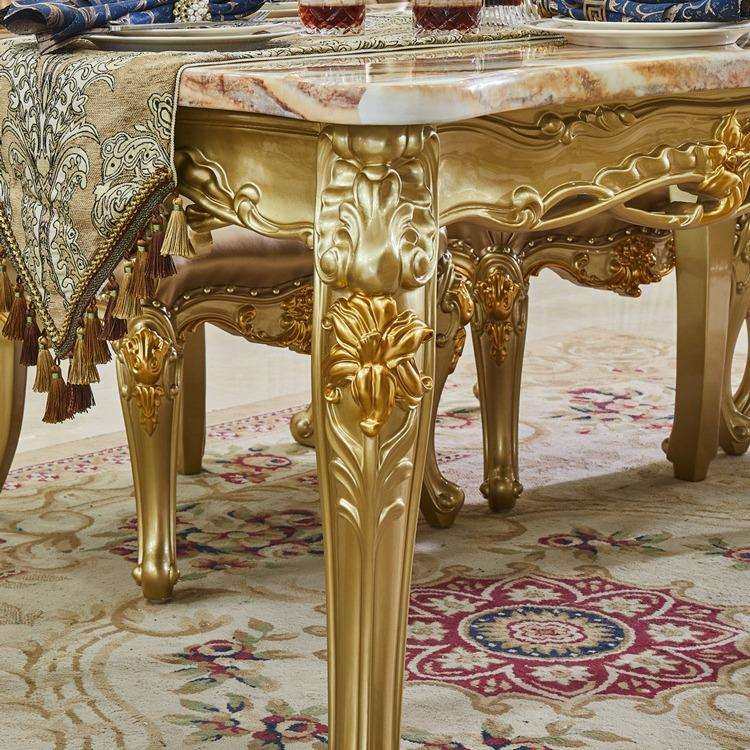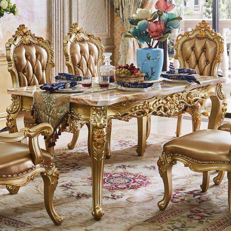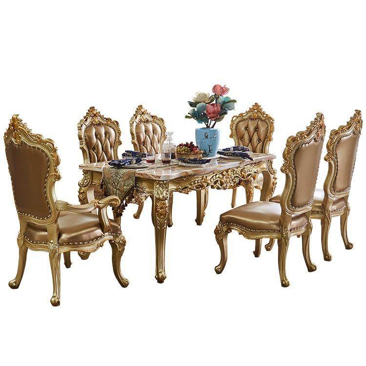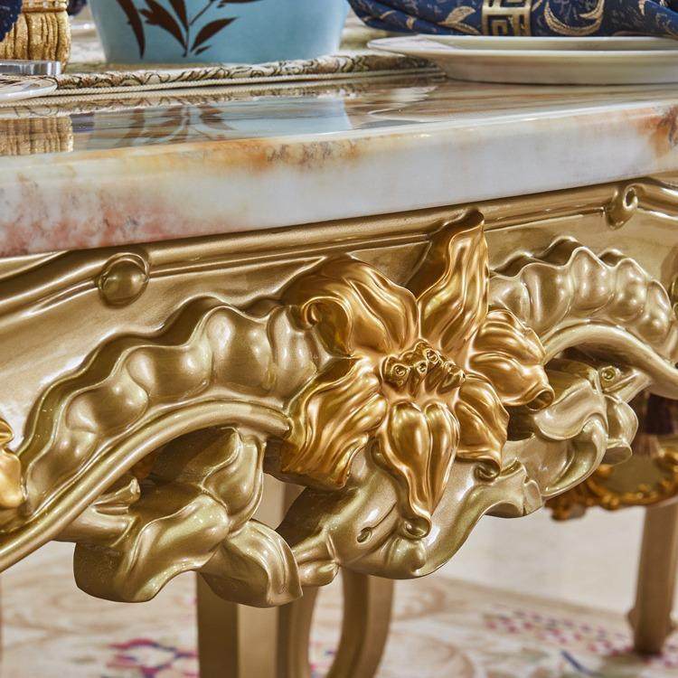欧式大理石实木餐桌椅子组合贵族金色长方形餐台奢华雕花吃饭桌子