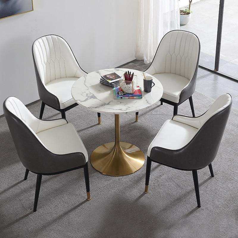 北欧商务洽谈接待桌椅组合现代简约轻奢大理石小圆桌一桌四椅餐桌