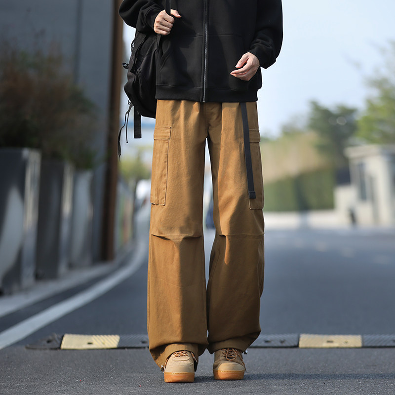 回力美式褶皱纯棉工装裤男士春秋季2026新款宽松直筒阔腿休闲裤子