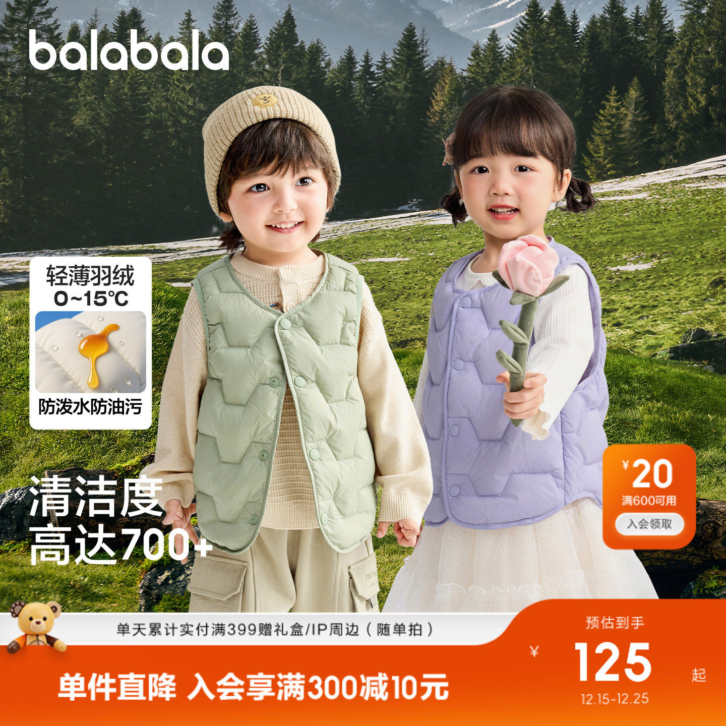巴拉巴拉童装儿童羽绒马甲女童男童外穿新款2025冬装高充绒保暖潮