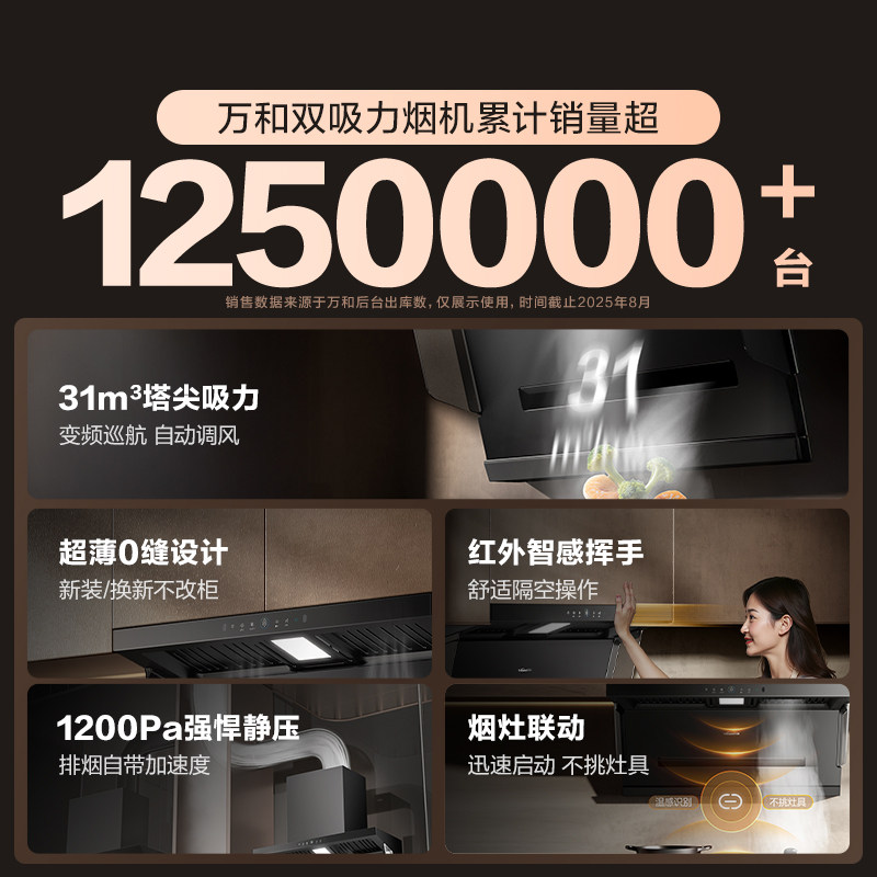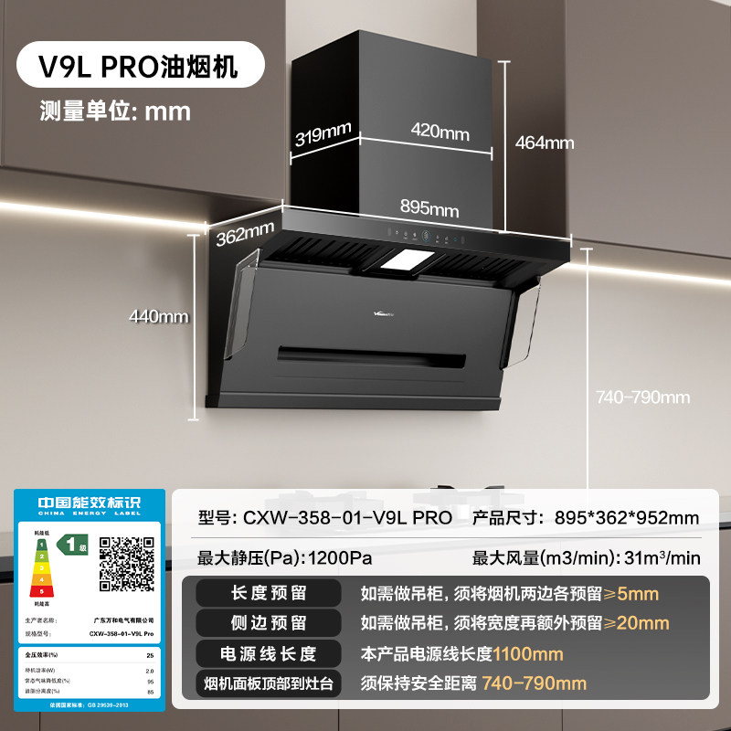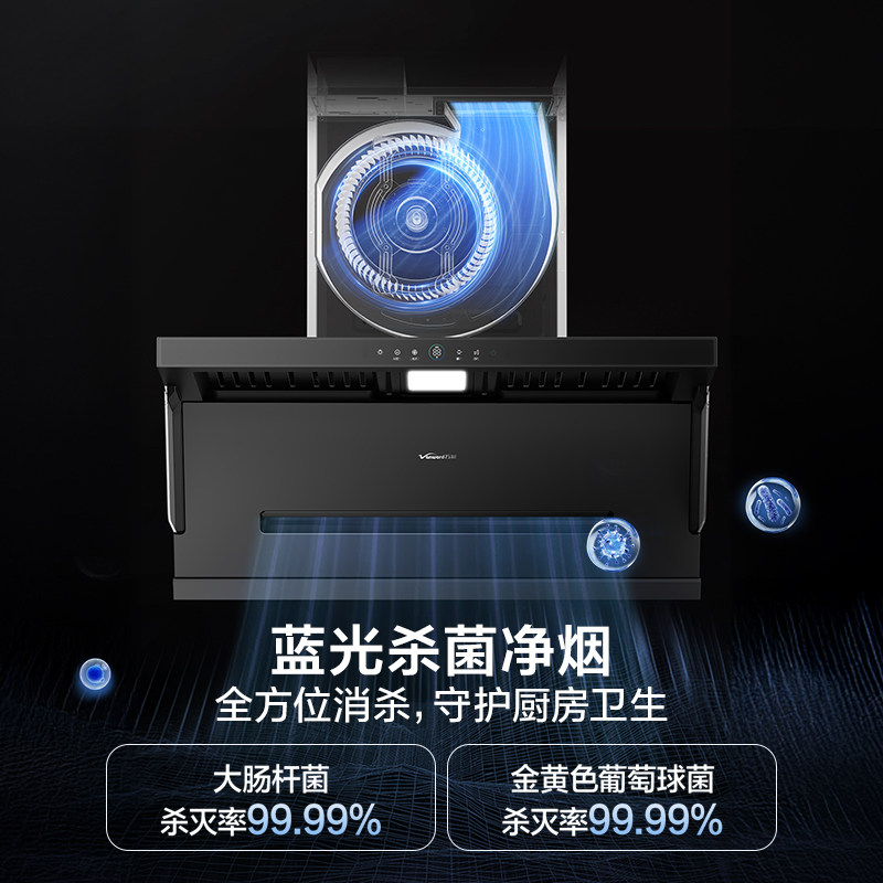 [政府补贴]万和蓝光净烟家用厨房大吸力顶侧三吸抽油烟机V9L系列