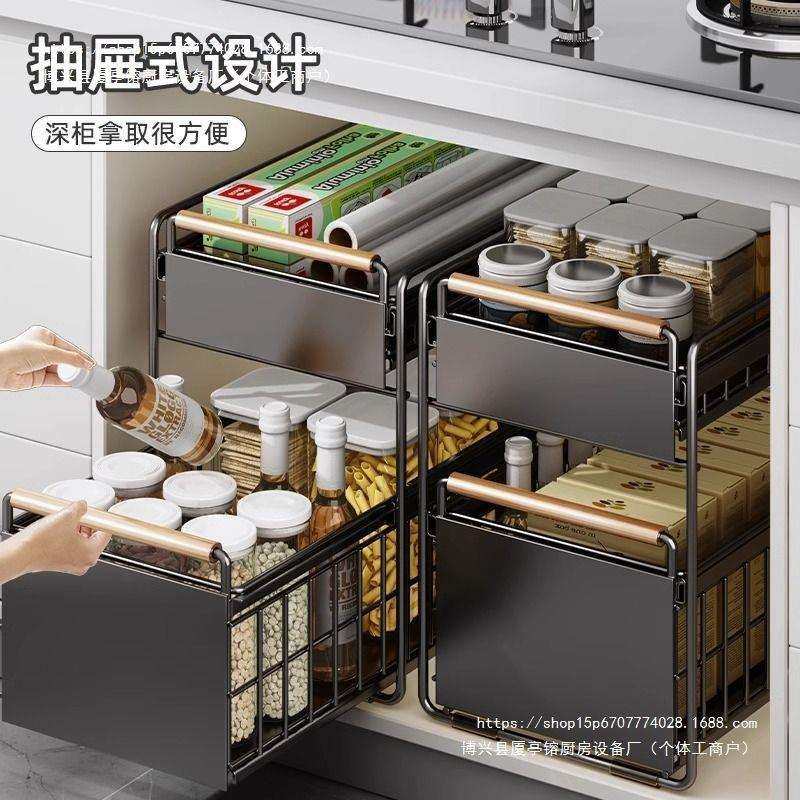厨房橱柜拉篮下水槽置物架多功能碗碟调料收纳抽拉式分层架子铁艺