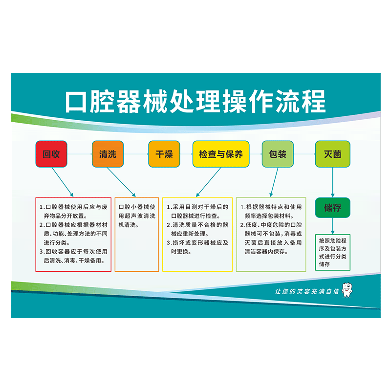 口腔诊所器械消毒流程图医疗牙科医院手机清洗压力灭菌包装标识牌