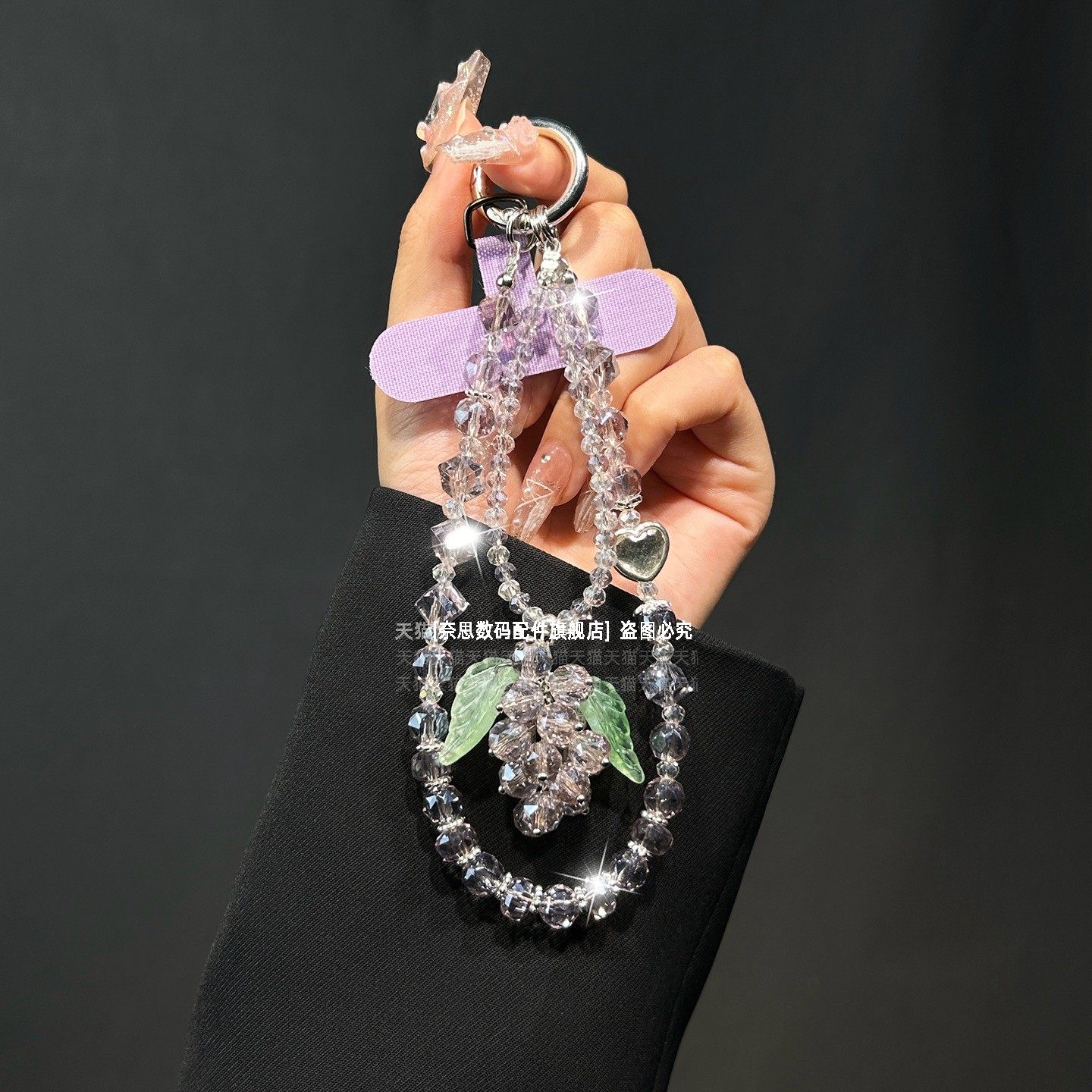 一串葡萄水晶手机链独特精致吊坠链条新款小众设计感别致好看挂链手腕串珠爆闪手链包包钥匙防丢腕带女夹片壳