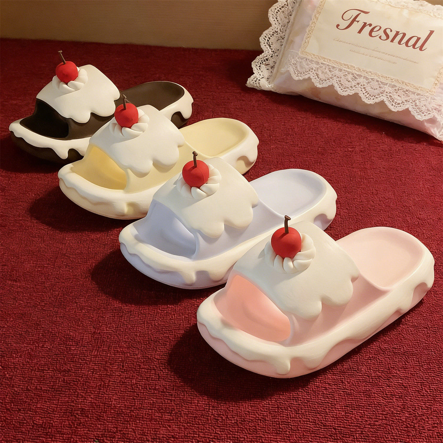 细细条 樱桃奶油蛋糕一字拖鞋女夏外穿沙滩度假防滑休闲居家凉拖