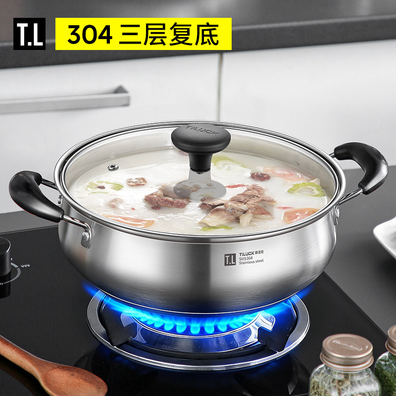 火锅锅家用304不锈钢火锅盆加厚锅具电磁炉专用汤锅燃气灶蒸煮锅