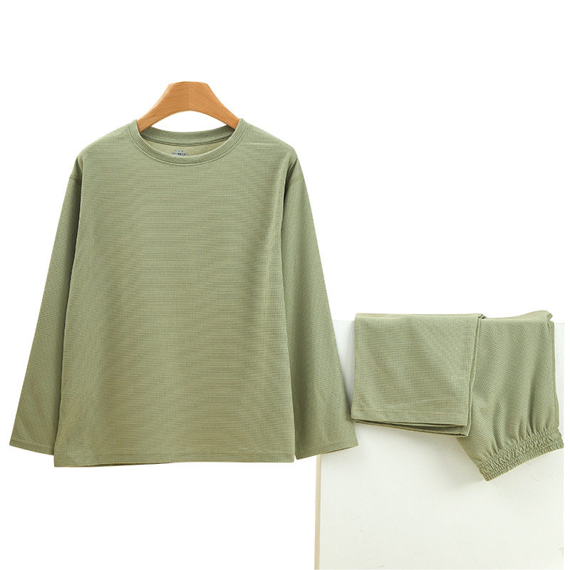华夫格情侣睡衣秋季新品男士家居服女士简约长袖长裤宽松休闲套装
