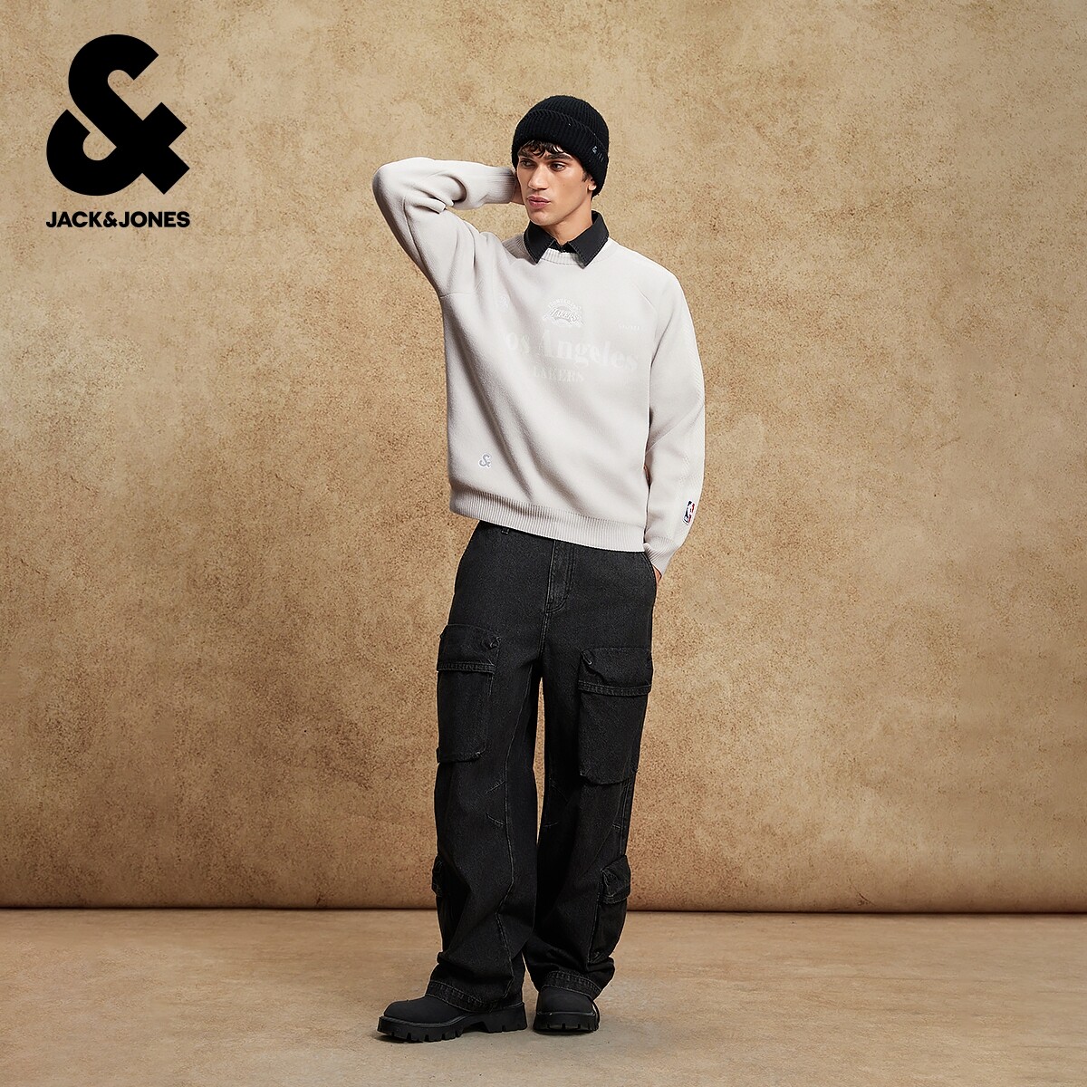 【NBA联名湖人队】杰克琼斯男装春季毛衣针织上衣纯色宽松休闲