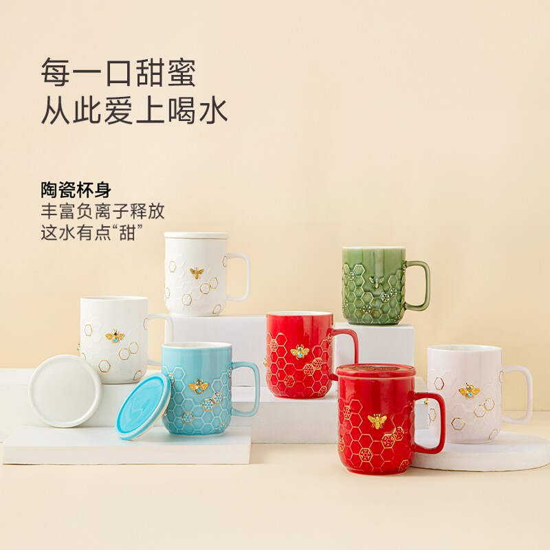 【家装节】乾唐轩活瓷大丰收陶瓷马克杯咖啡杯水杯带盖鎏金