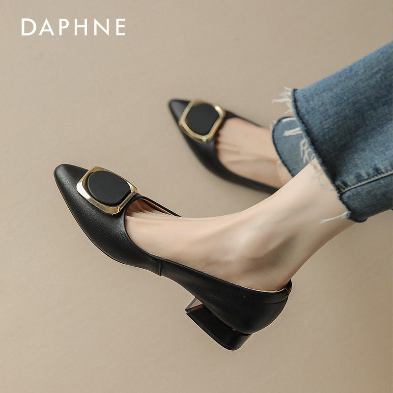 达芙妮尖头单鞋女2025新款平底秋季妈妈鞋低跟女鞋法式秋鞋小皮鞋
