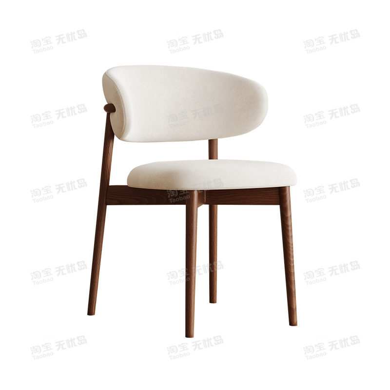 轻奢侘寂风餐椅皮软包设计师现代弯曲木咖啡厅实木椅子家用书房椅