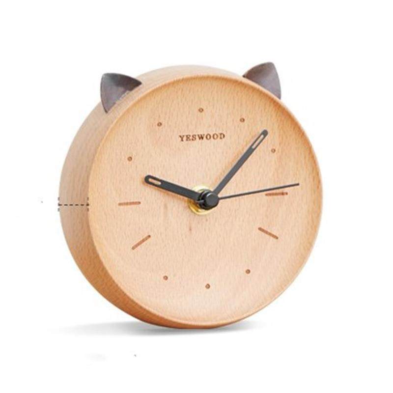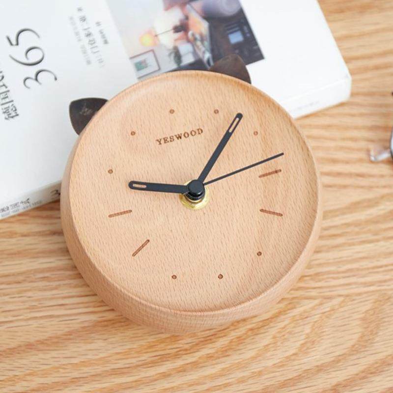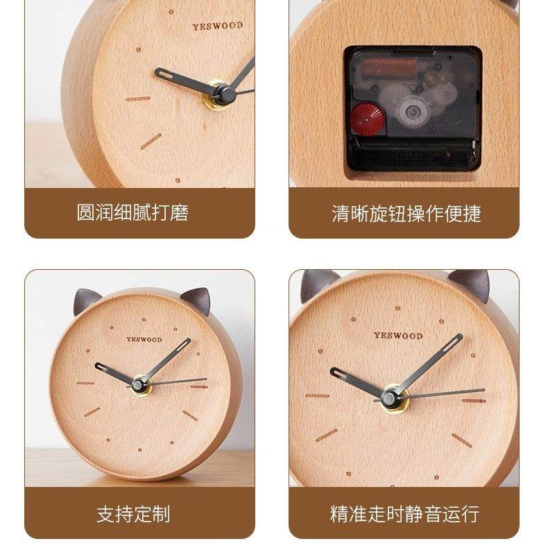 榉木静音座钟 实木钟表摆件客厅现代简约原木跨境台式圆形钟表