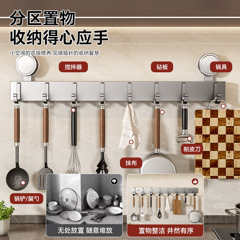 百悍吸盘厨房挂钩挂杆置物架挂架收纳架壁挂式免打孔排钩粘钩墙面