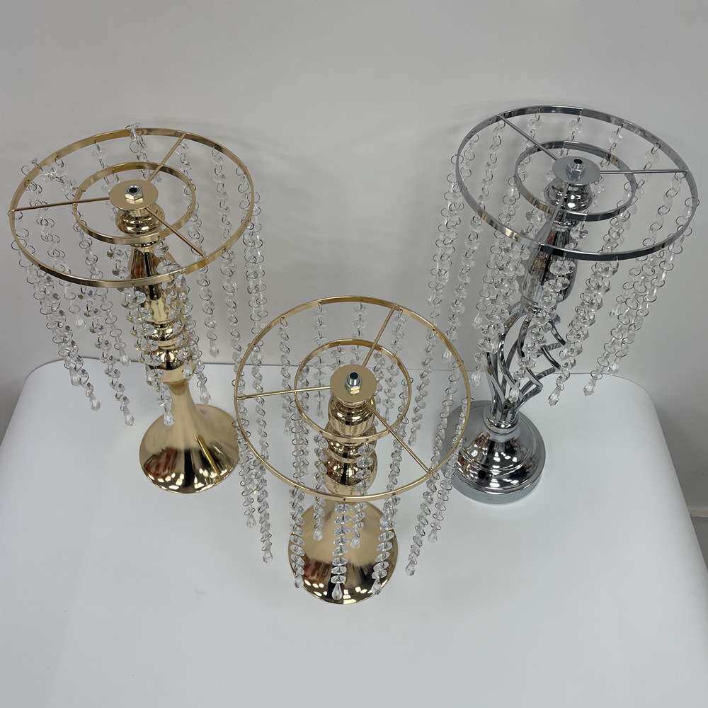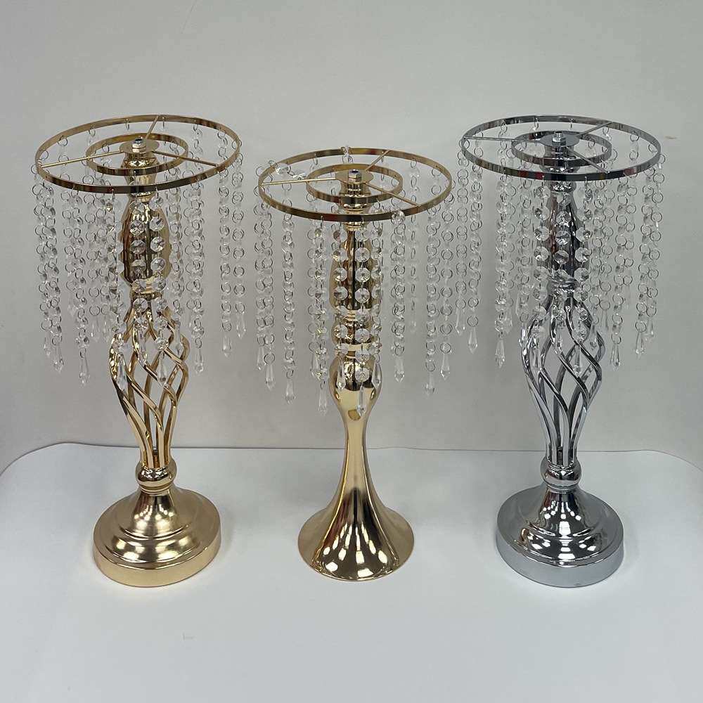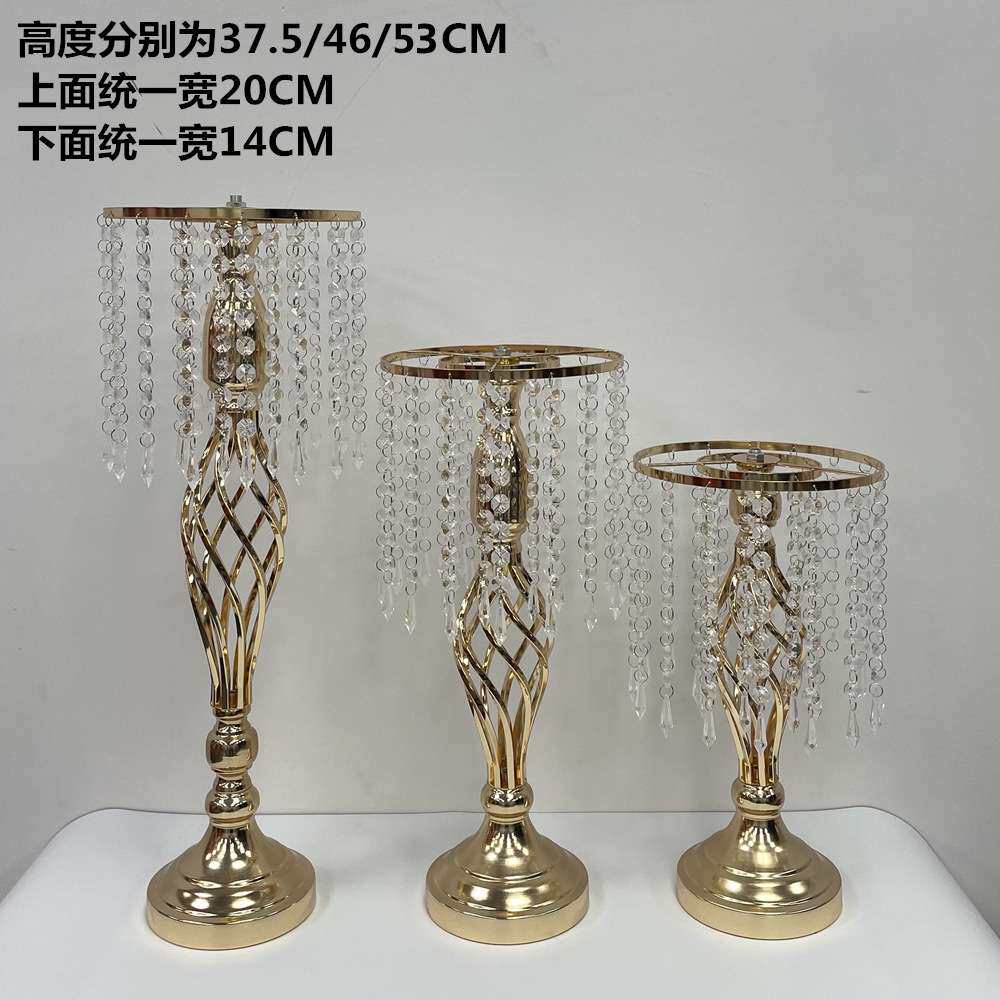 婚庆桌花架子婚礼堂酒店布置道具主桌装饰水晶珠帘花器铁艺摆件
