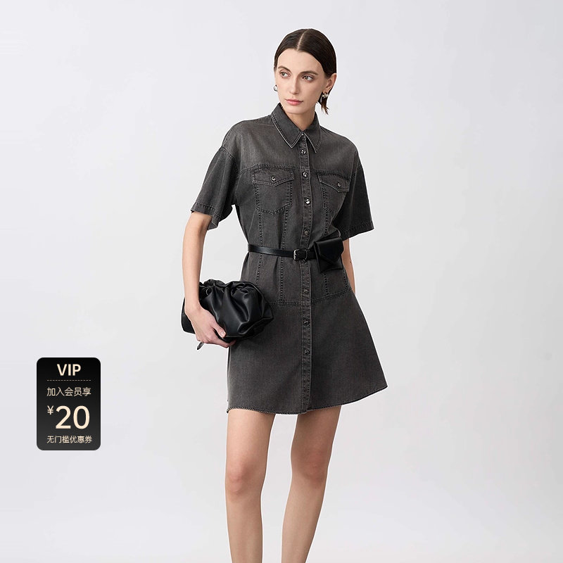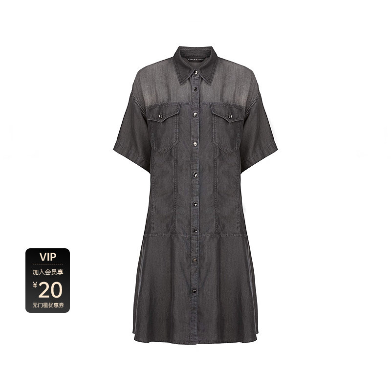 衬衫连衣裙 拼接设计 做旧牛仔