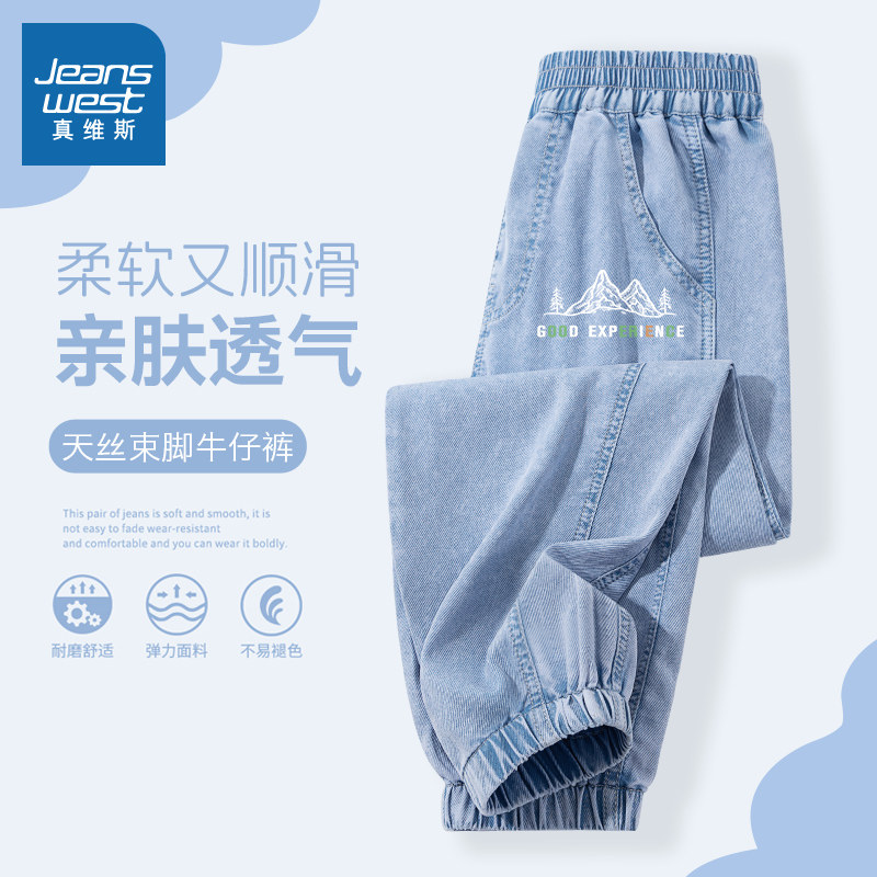 真维斯男童天丝牛仔裤2025新款大童夏季薄款运动长裤儿童防蚊裤子