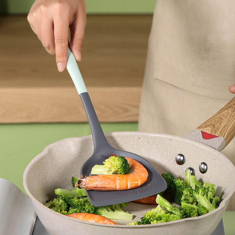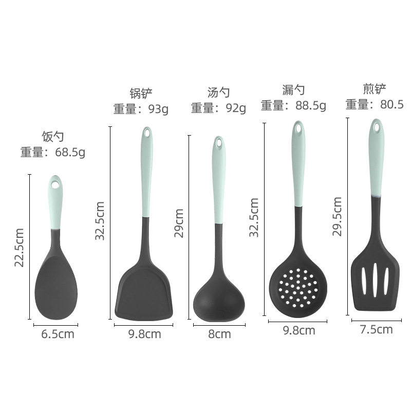 灰绿色硅胶铲锅铲不粘锅专用勺子铲子汤勺家用炒菜耐高温厨具套装