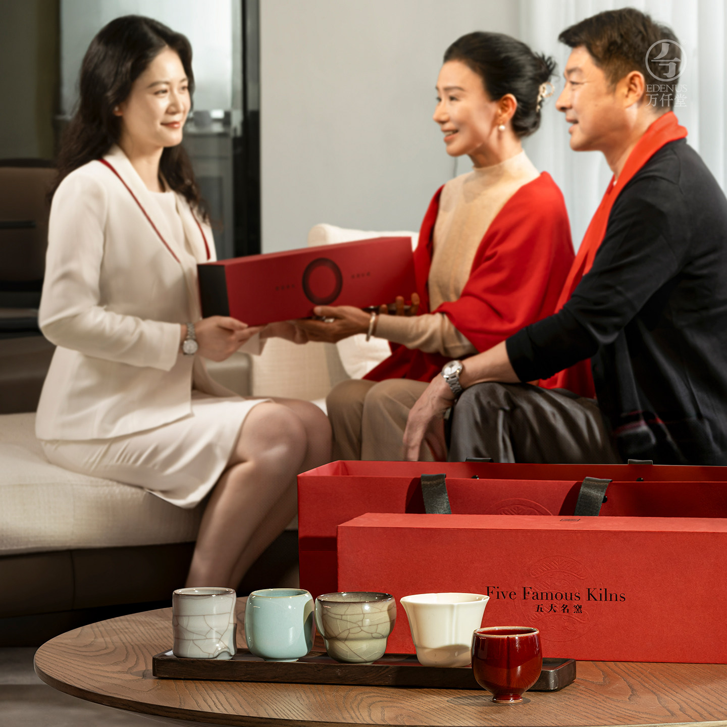 万仟堂茶杯主人杯个人专用高档功夫茶杯套装礼盒送人五大名窑杯