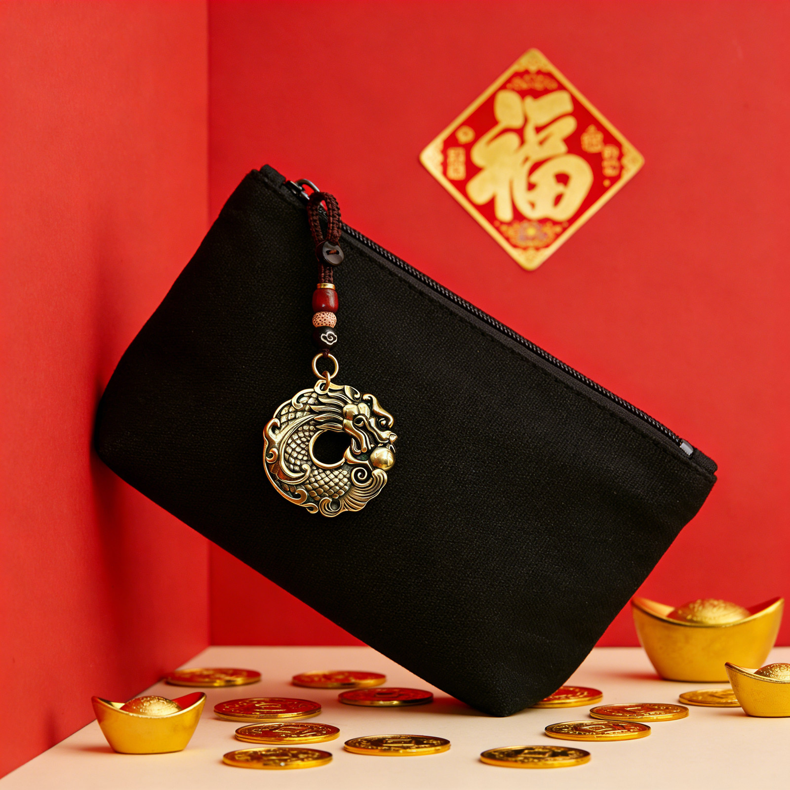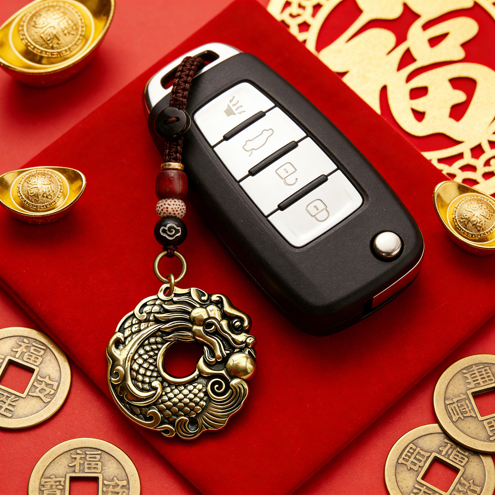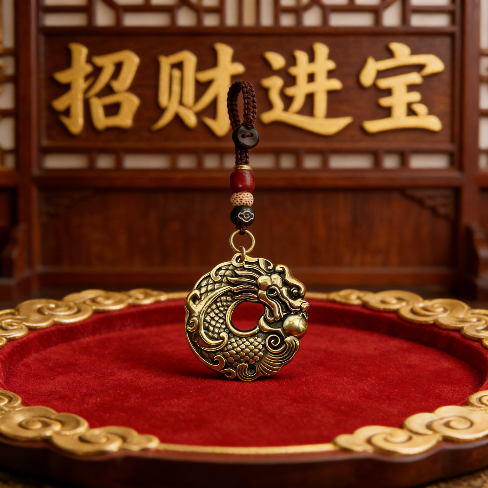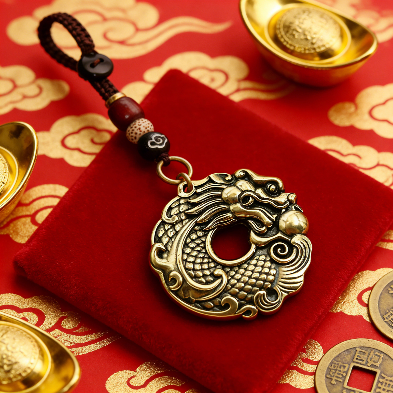 【飞黄腾达】真黄铜锦鲤化龙平安扣钥匙扣挂件 越磨越亮