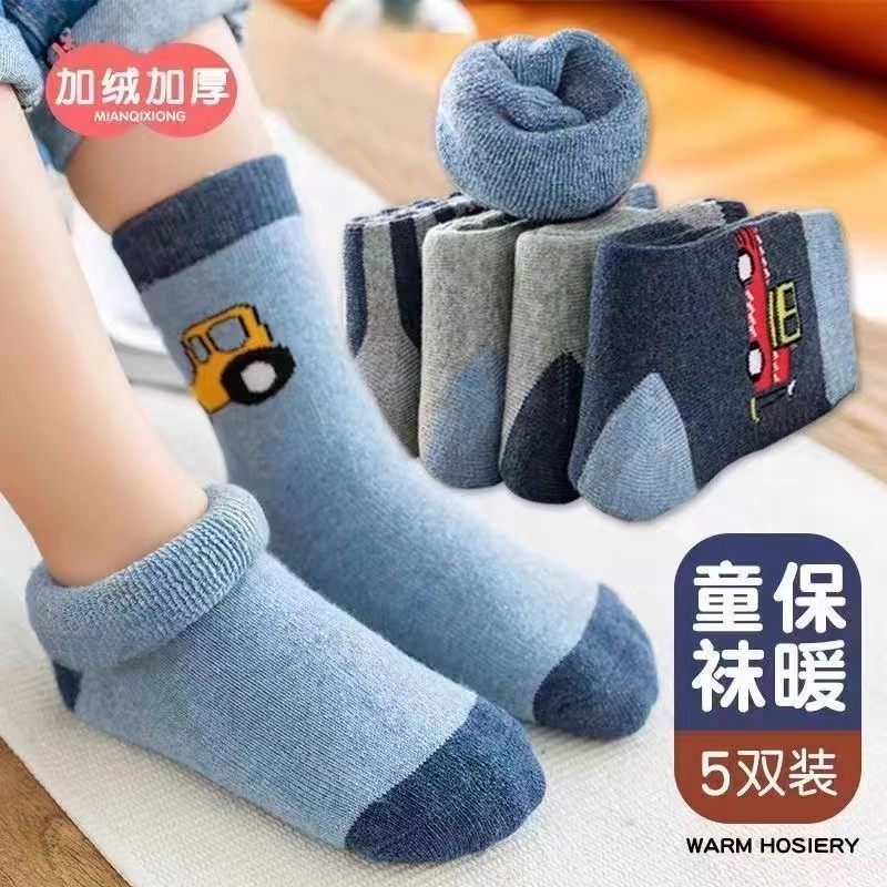 儿童袜子秋冬季加绒加厚卡通可爱毛圈袜蓄热保暖男女童宝宝中筒袜