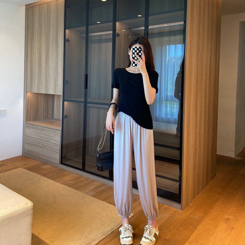 纵享丝滑醋酸缎面凉凉裤女2024夏季薄款抗皱垂顺宽松防蚊防晒裤子