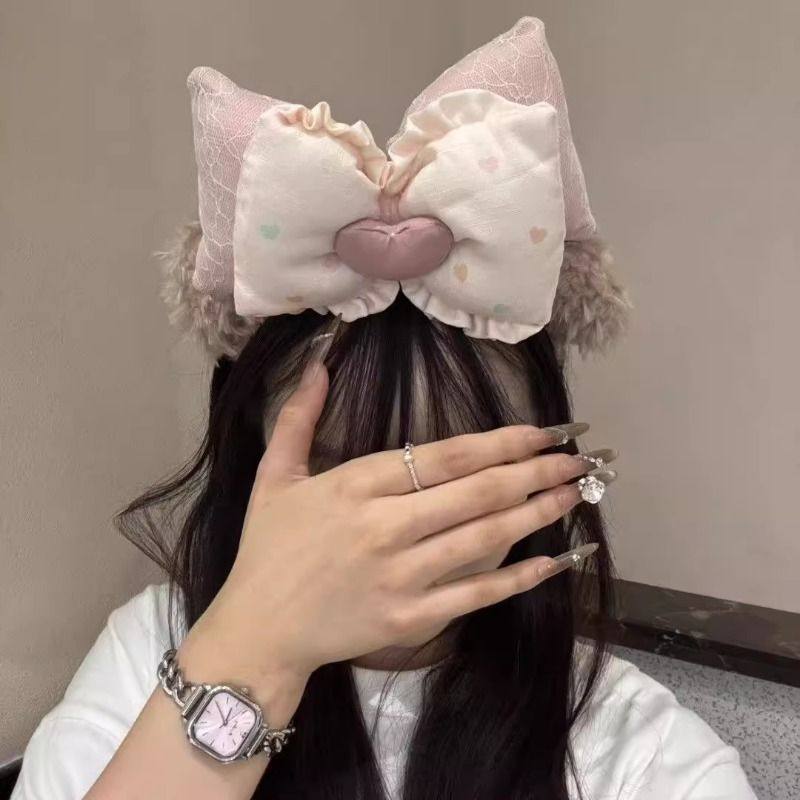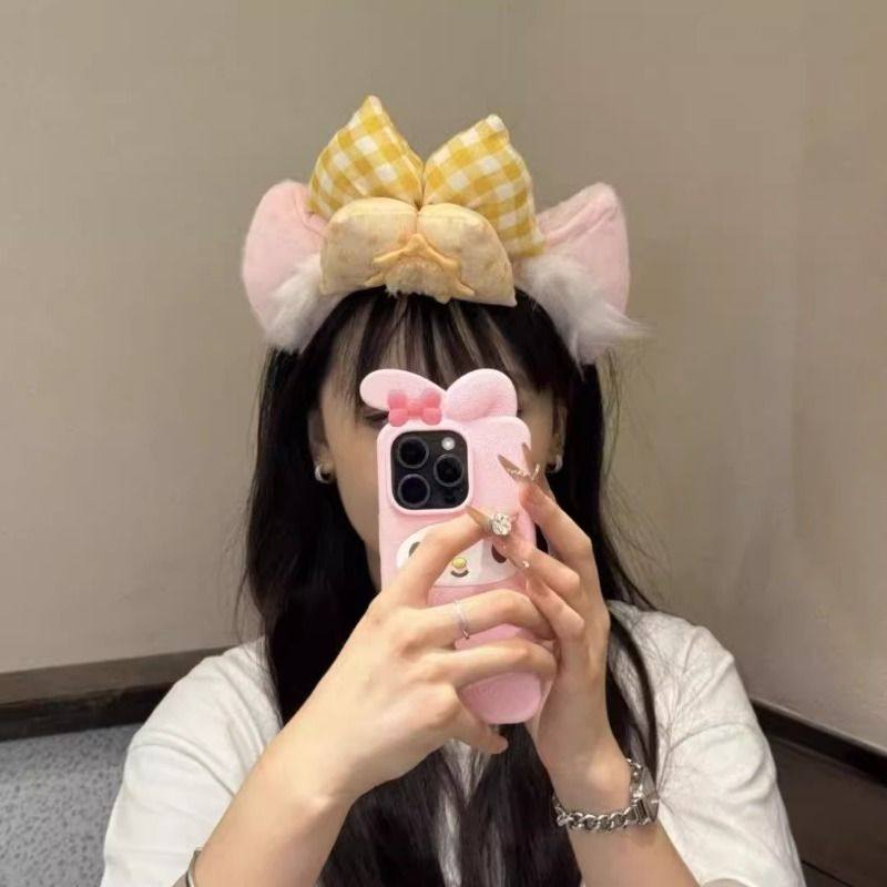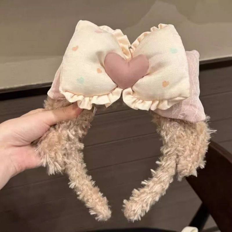 可爱蝴蝶结毛茸茸洗脸发箍女2025新款头箍卡通打卡发卡贝儿雪莉