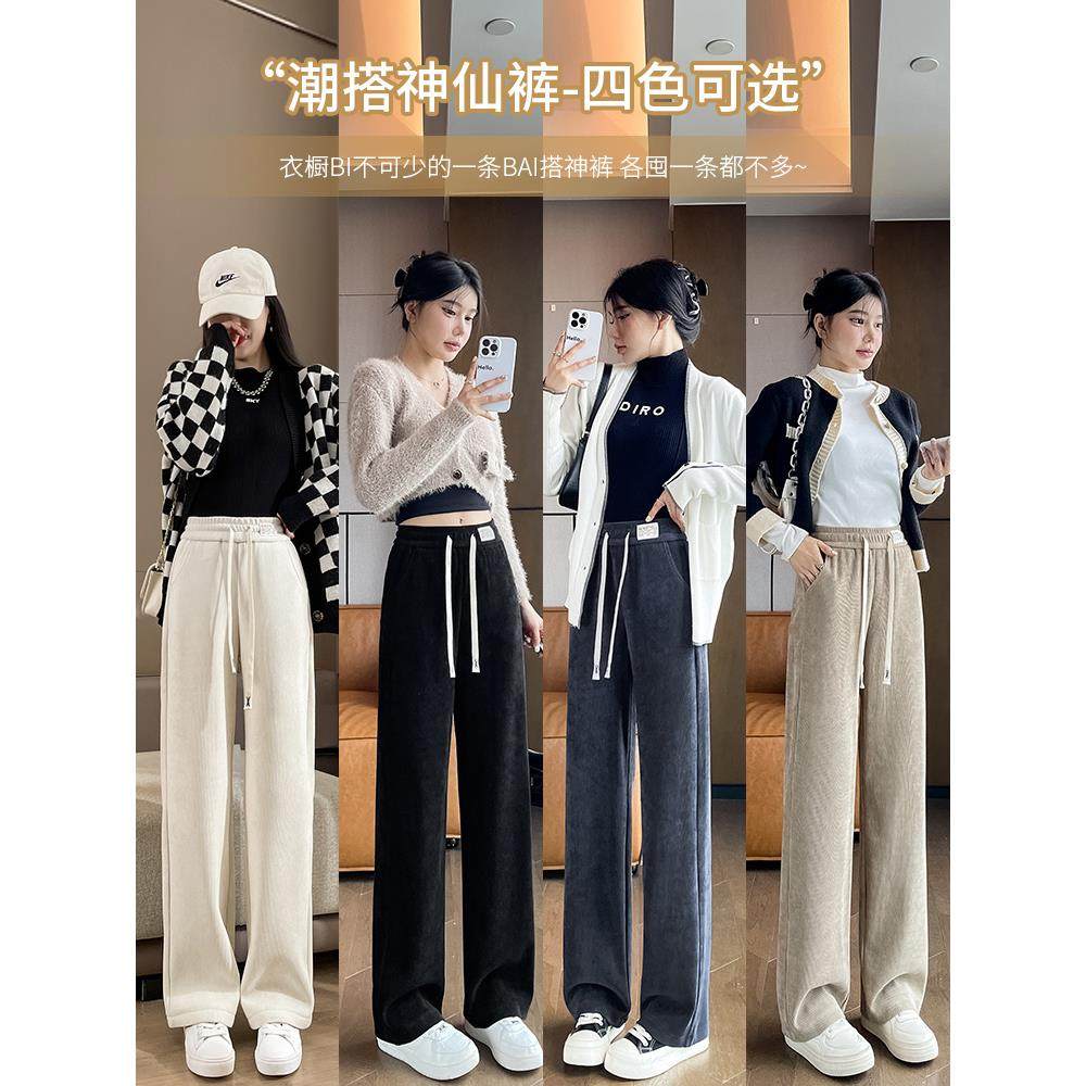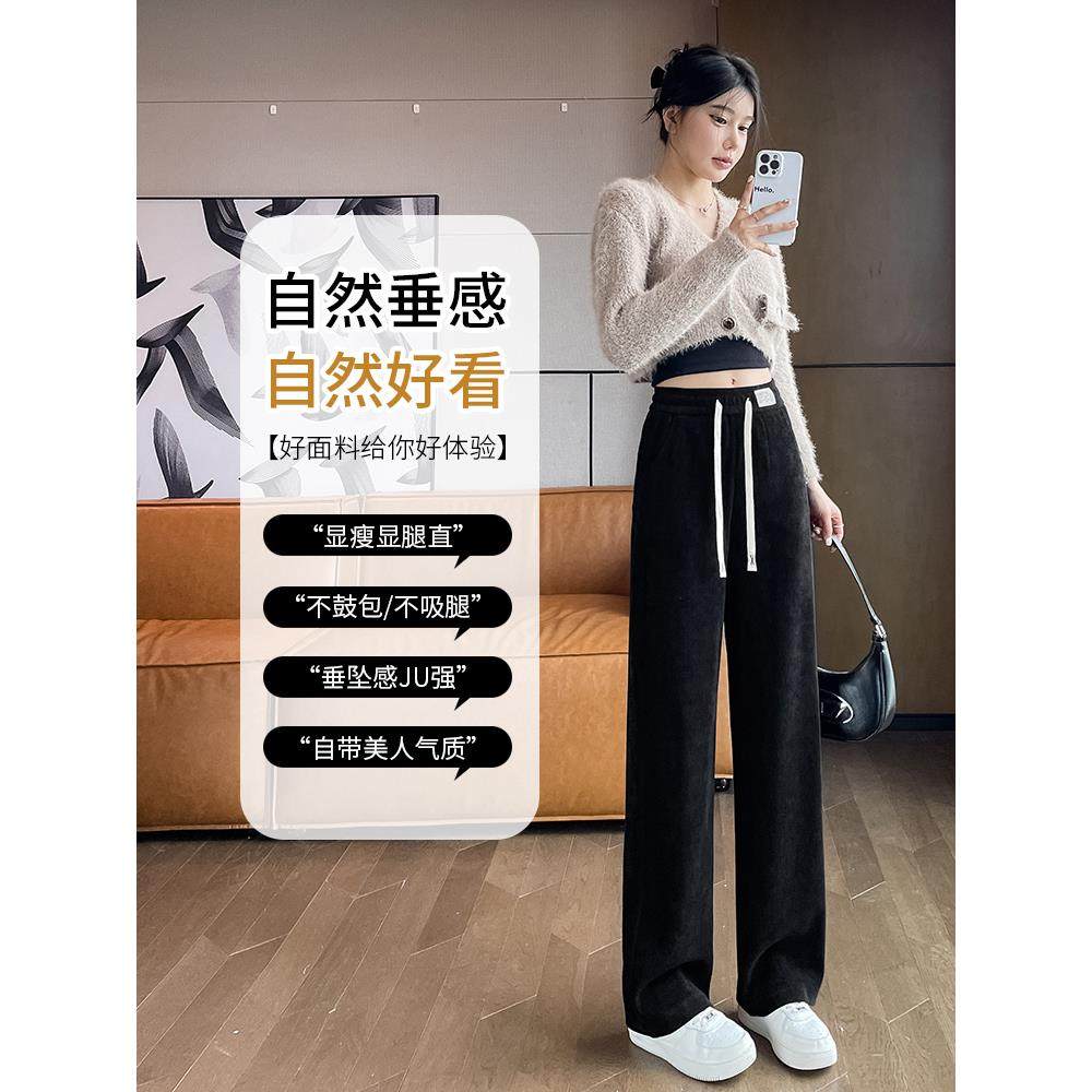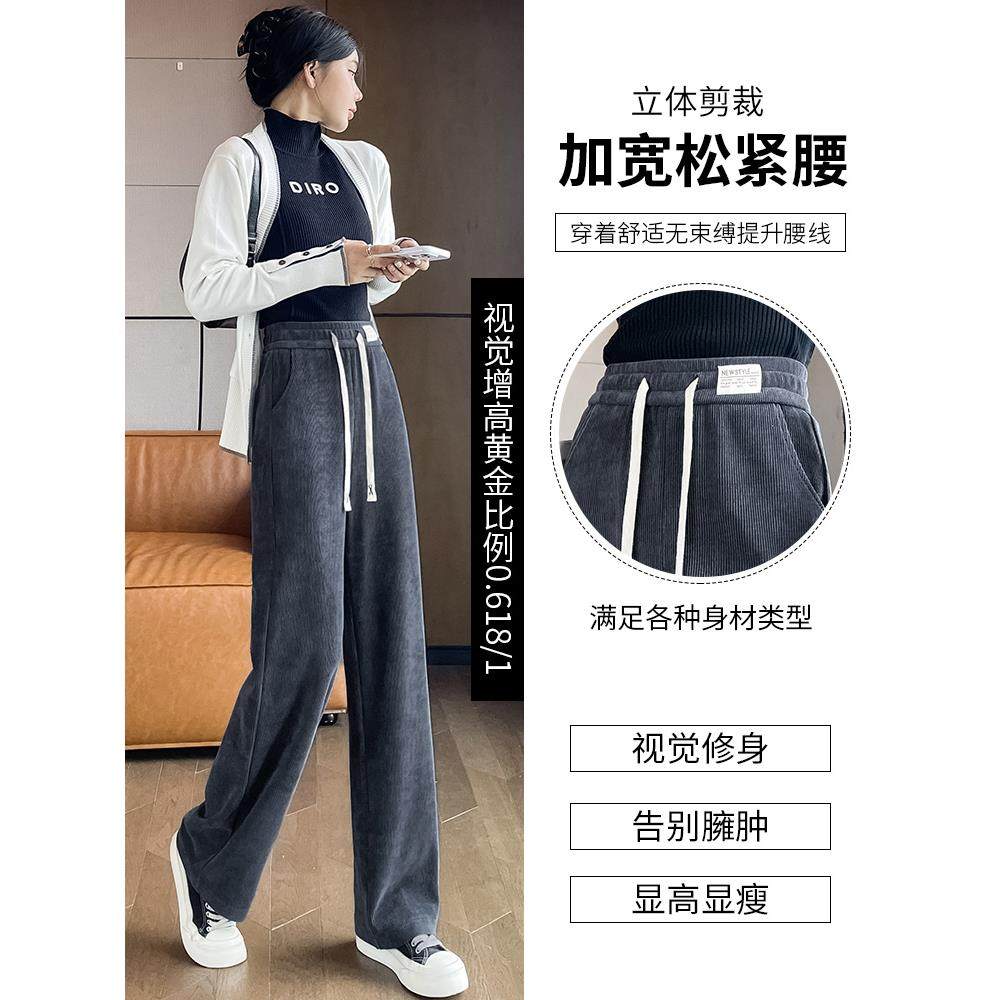 窄版雪尼尔阔腿裤女秋冬2025新款休闲直筒女士加绒加厚灯芯绒大码