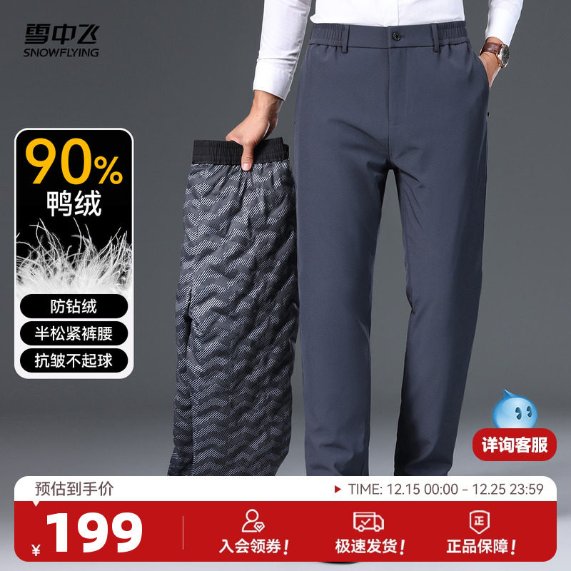 雪中飞2025冬新款男士直筒纯色系带羽绒裤保暖商务休闲时尚百搭