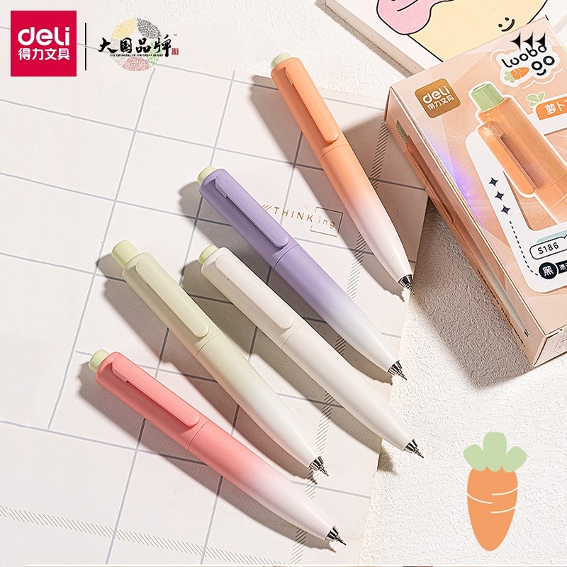 得力萝卜丁口袋笔便携中性笔黑色医护教师用0.5速干st笔头顺滑双球珠办公水笔按动笔高颜值签字笔圆珠笔双珠