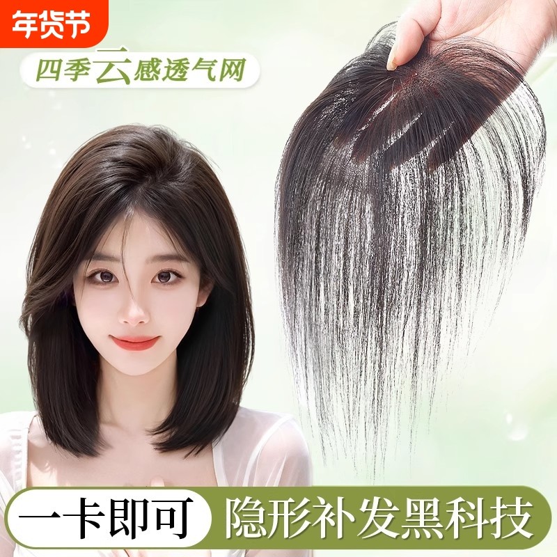 假发女片头顶补发蓬松高颅顶全真人发遮白发增发量轻薄无边假刘海