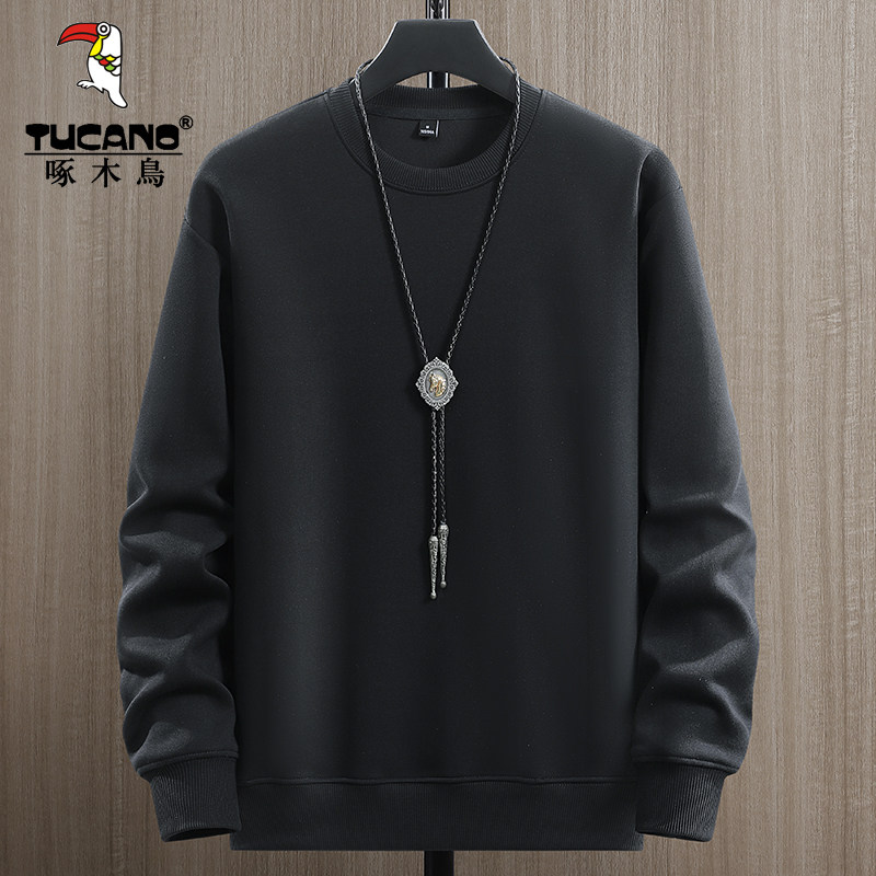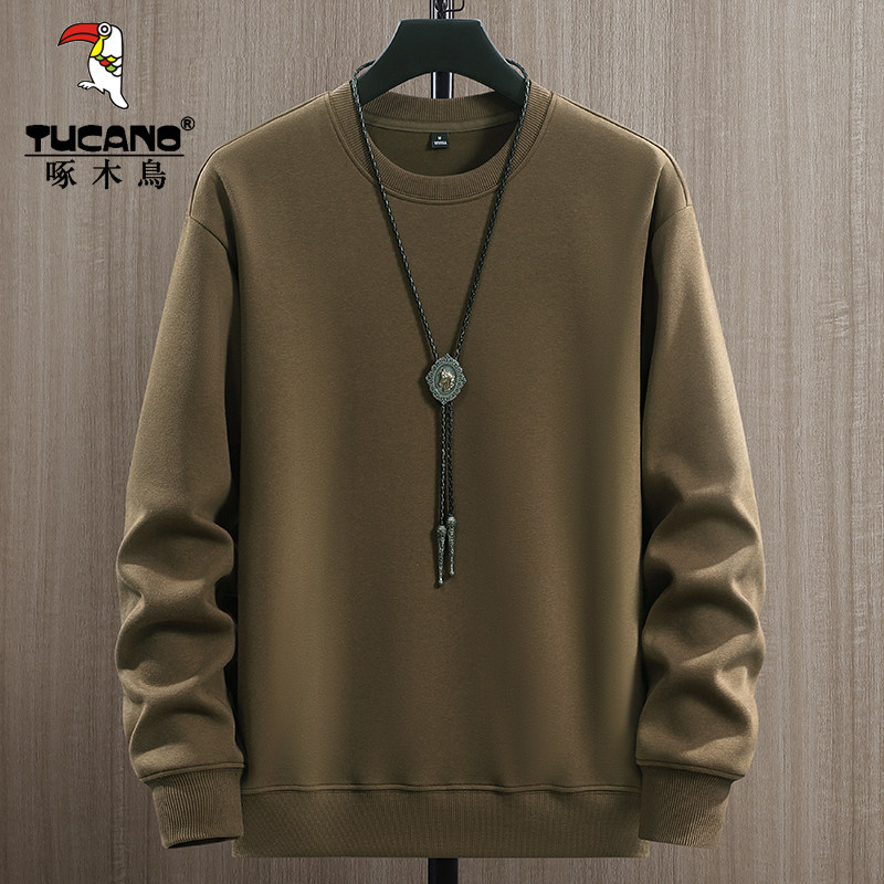 啄木鸟红色纯棉卫衣男士圆领套头春秋款休闲宽松秋季长袖打底衫