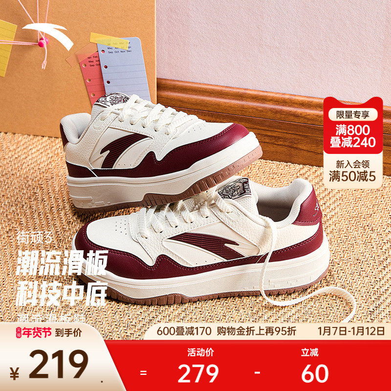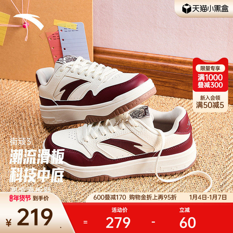 安踏街顽3丨黑白低帮板鞋女鞋2025冬季新款撞色时尚滑板鞋运动鞋