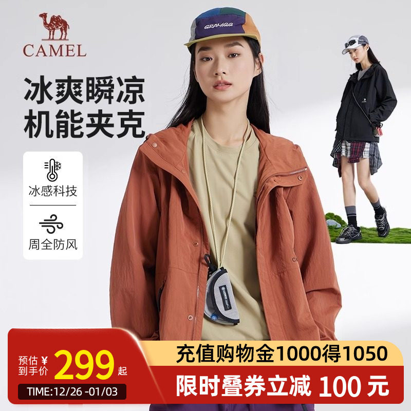 骆驼女装单层冲锋衣2025秋冬新款户外防风防水连帽立领男女款外套