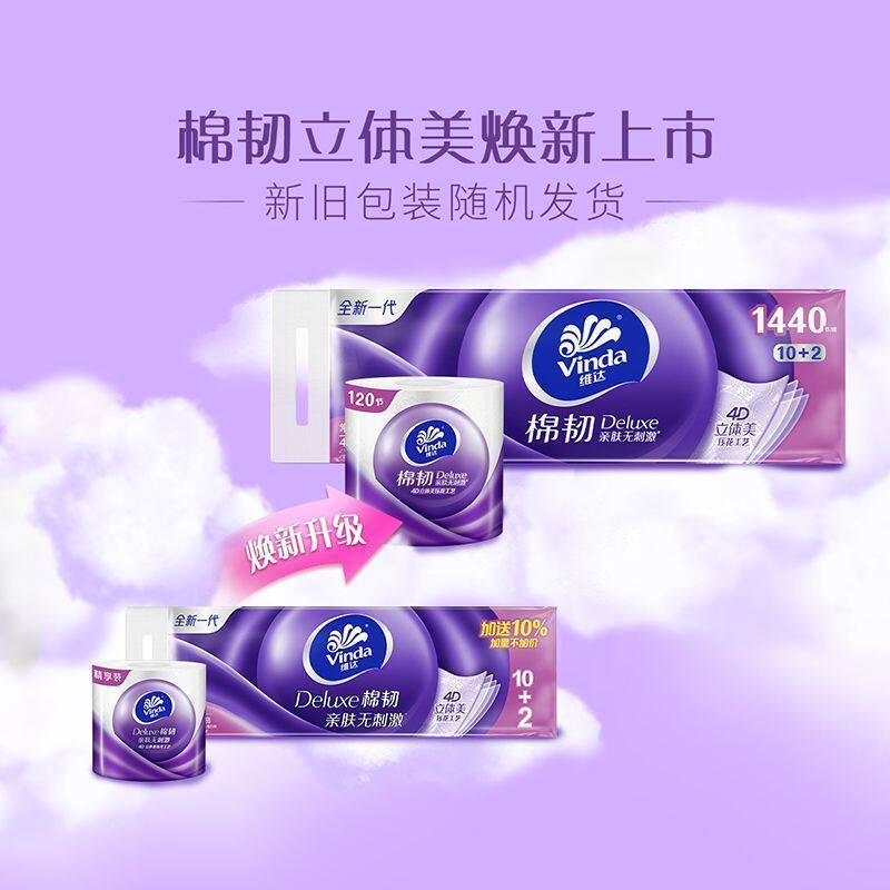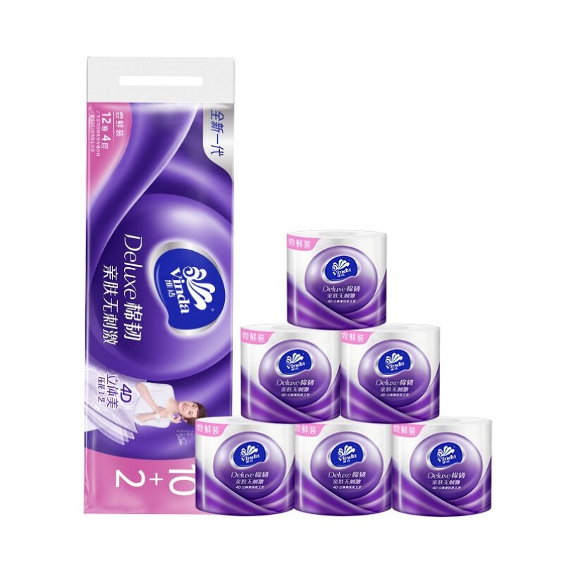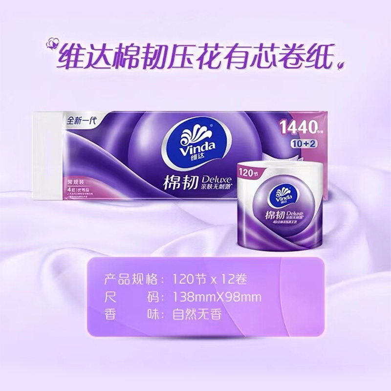 维达有芯卷纸棉韧4层110g12卷家用实惠厕所卷筒纸卫生纸纸巾压花