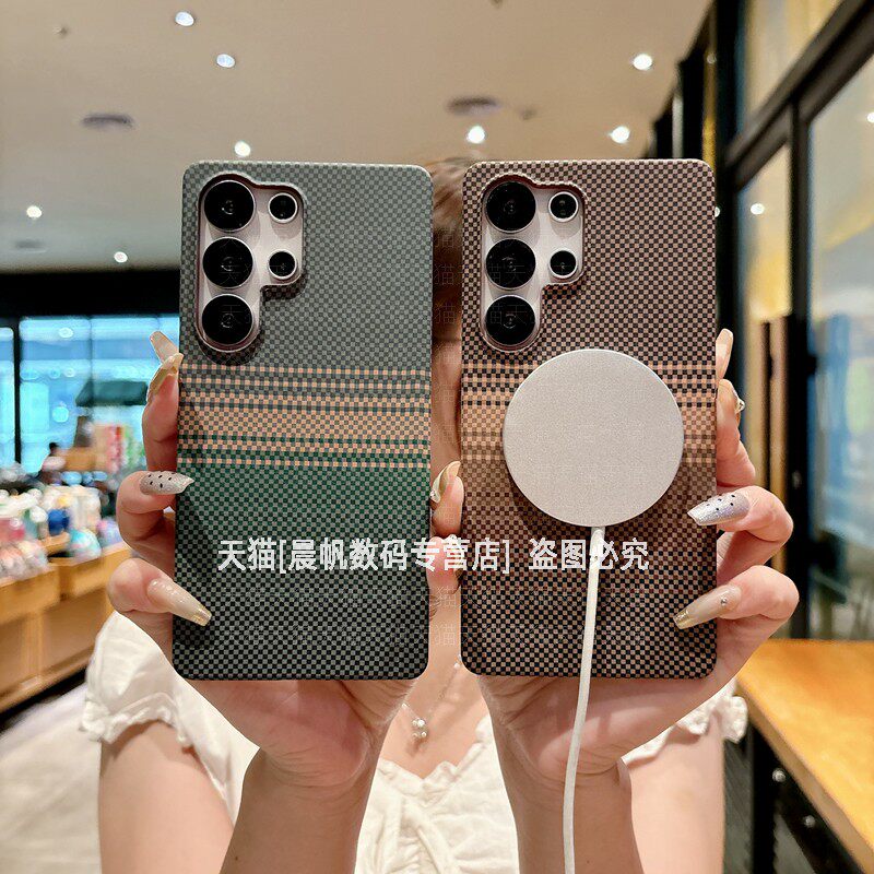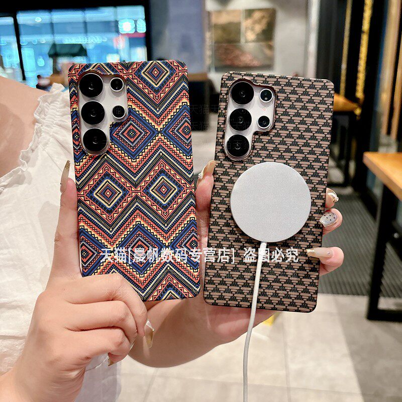 适用三星S25ultra手机壳S26凯夫拉纹理s24uitra强力磁吸s23ultar半包边s22plus民族风p高级感u磨砂十超薄硬壳