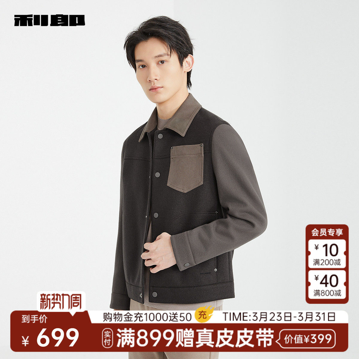 【热燃/绵羊毛】利郎官方 短款毛呢大衣男士翻领冬季夹克外套