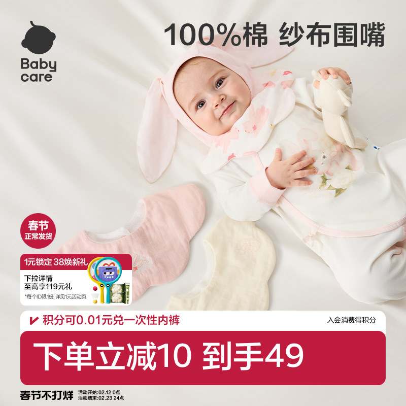 babycare口水巾新生婴儿宝宝口水兜纱布花瓣围嘴儿童围嘴围兜方巾
