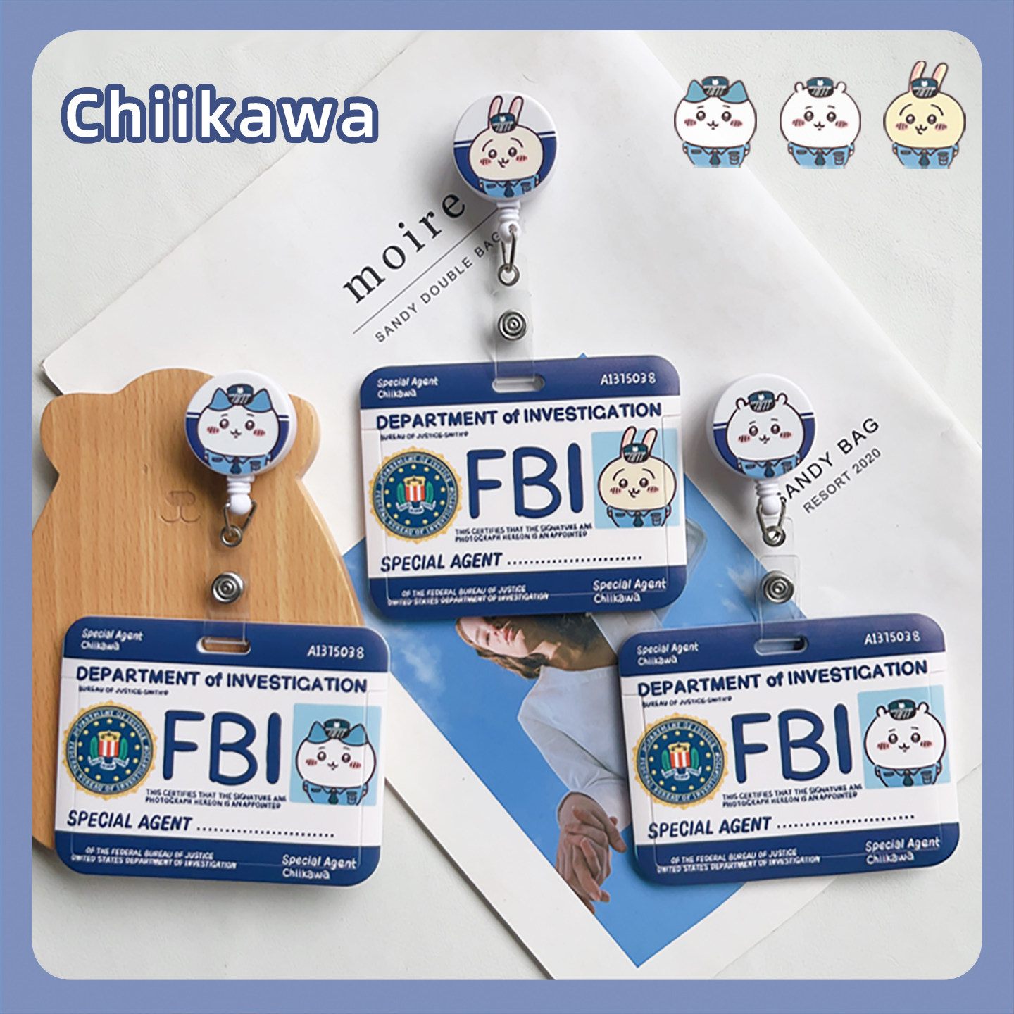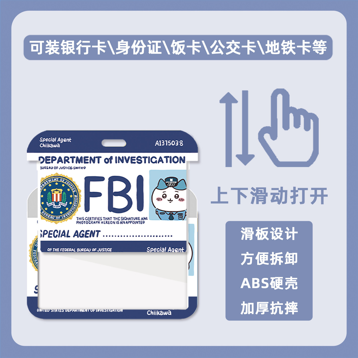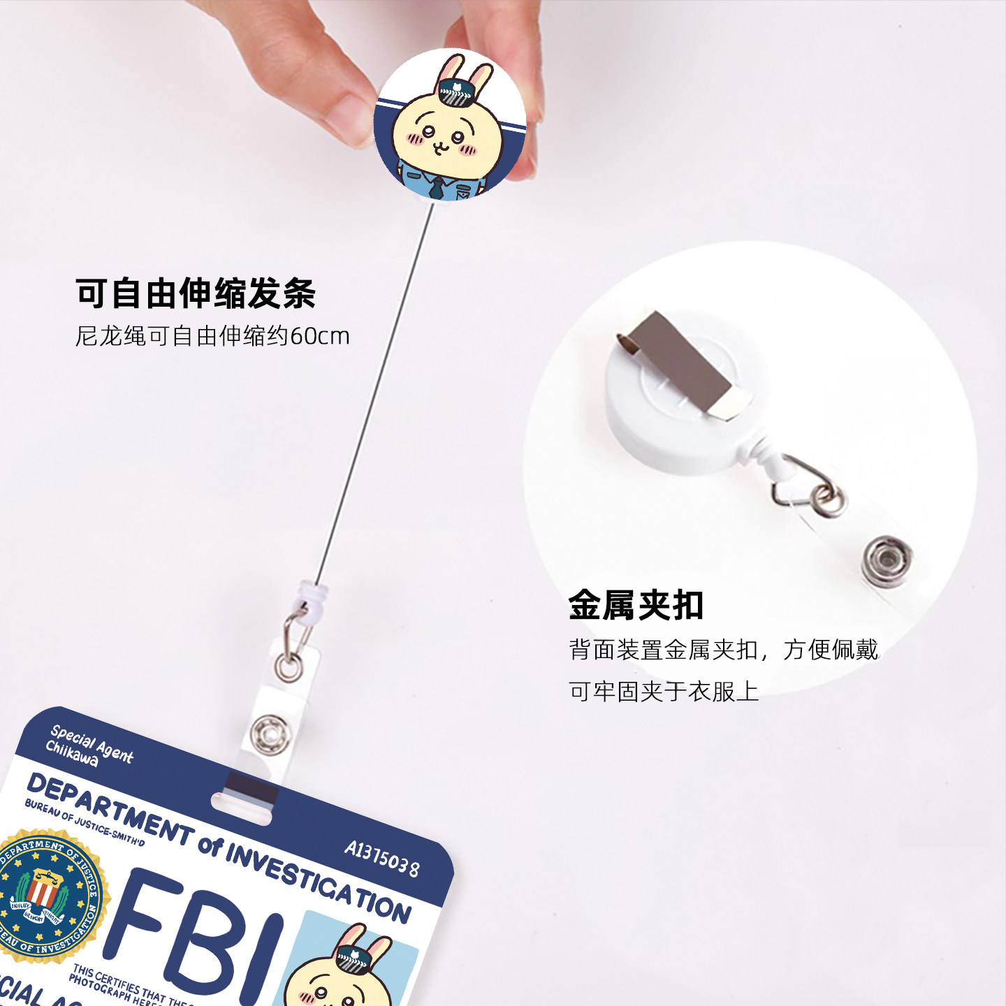 卡套接送卡工牌FBI校园卡通保护壳易拉扣工作证护士胸牌医生证件工牌可伸缩夹扣公交卡套横板可爱创意学生绳