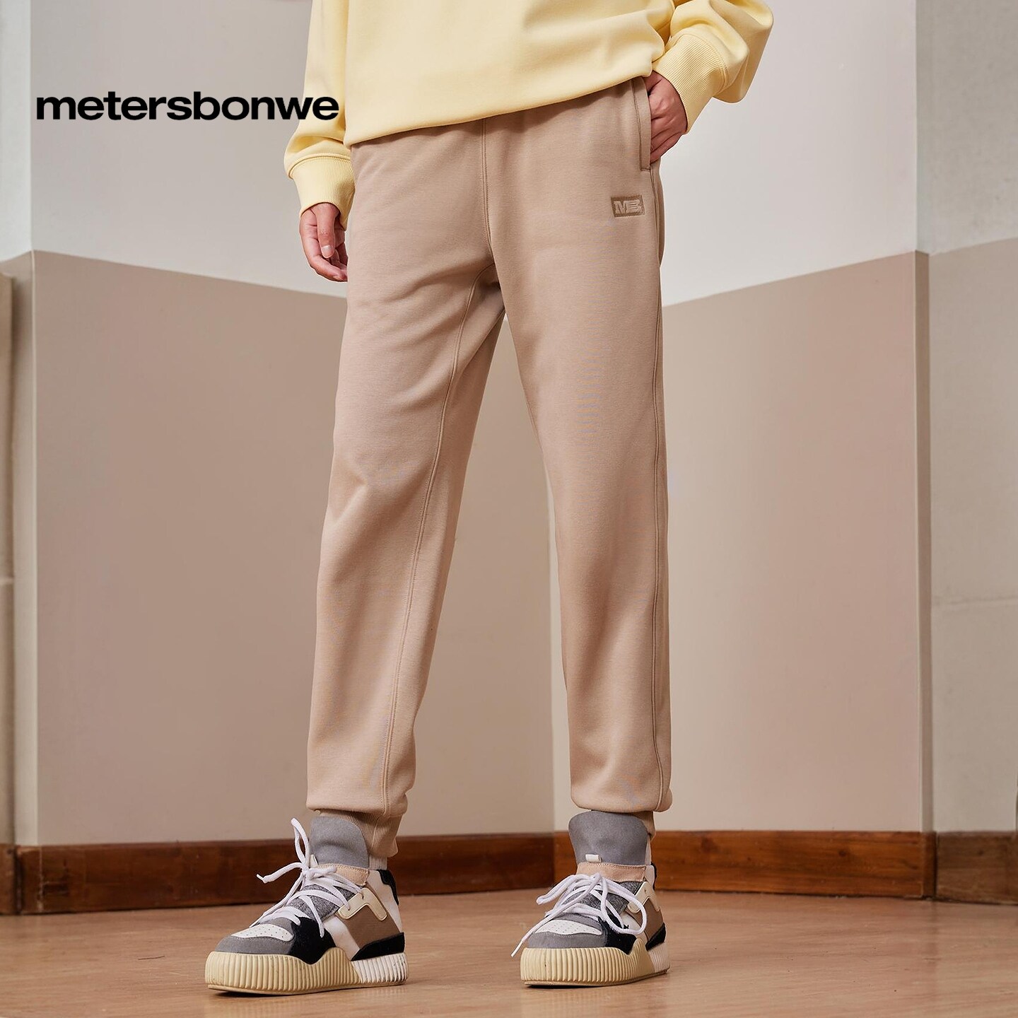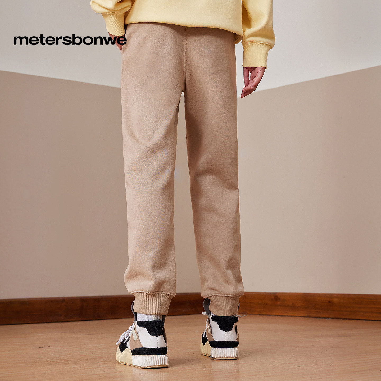美特斯邦威男女款螺纹束脚刺绣简约休闲长裤秋冬新款加绒保暖下装
