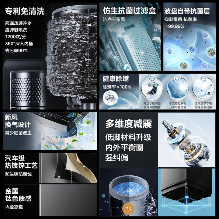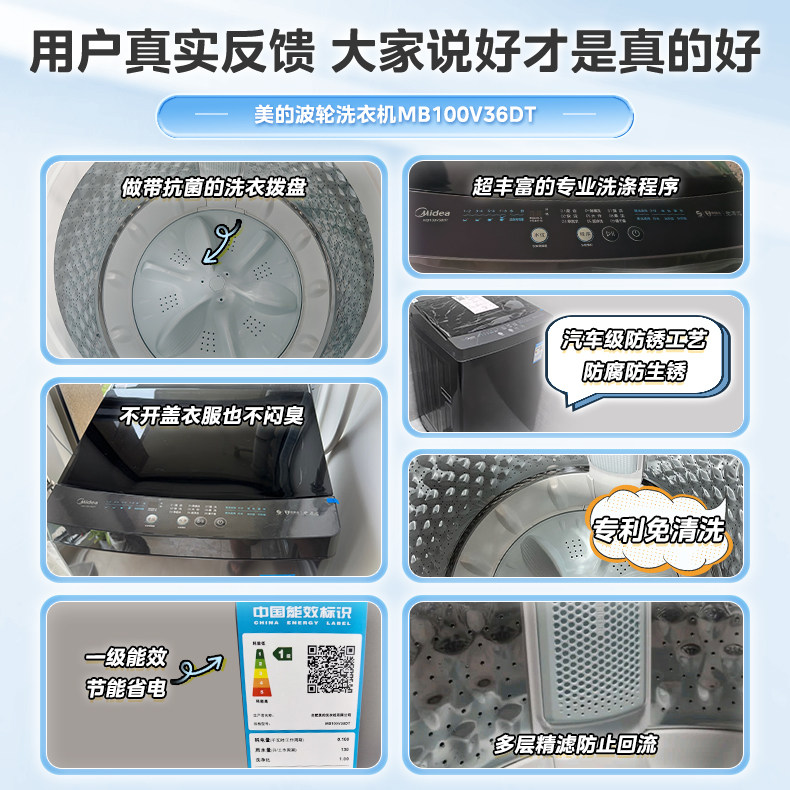 全民补贴美的波轮8/10/12公斤直驱变频洗衣机全自动家用大容量36D