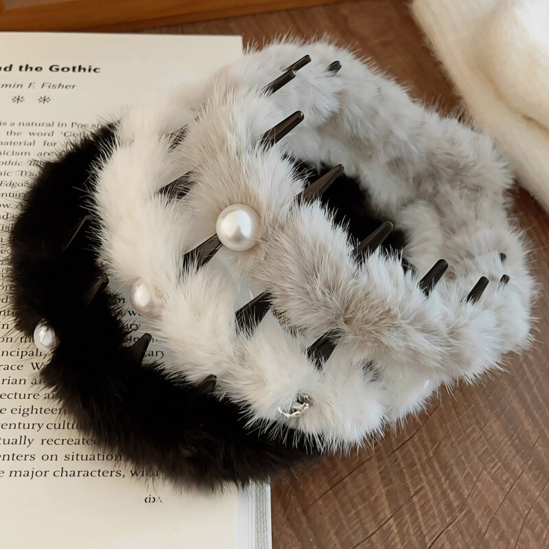 精致珠珠水钻毛绒波浪发箍增高颅顶头箍带齿防滑碎发整理压发发卡