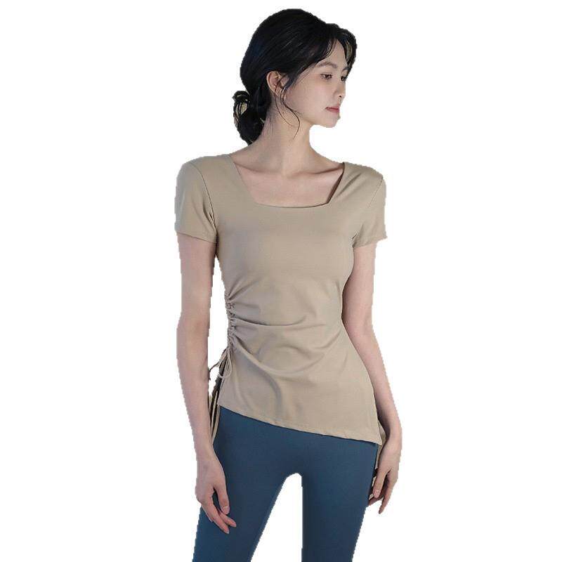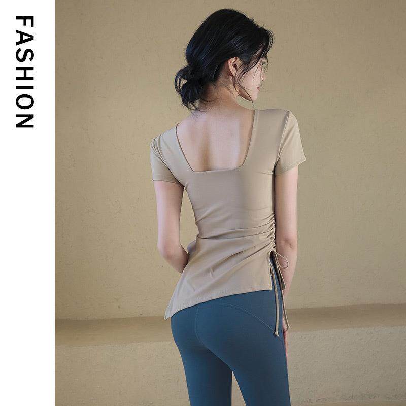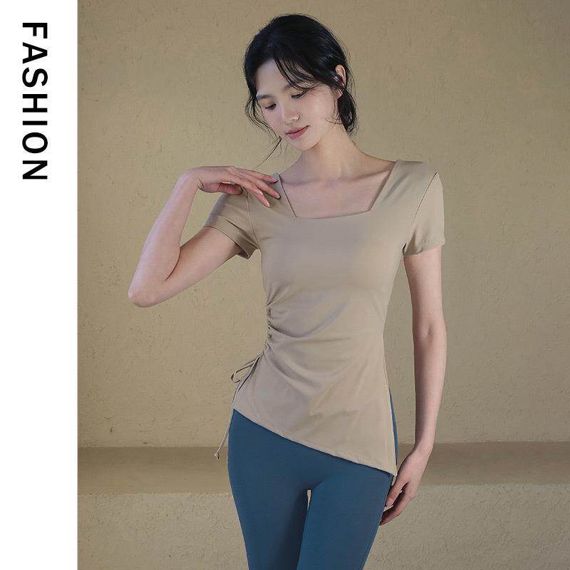 夏季速干透气运动健身训练套装女上衣带胸垫短袖T恤普拉提瑜伽服