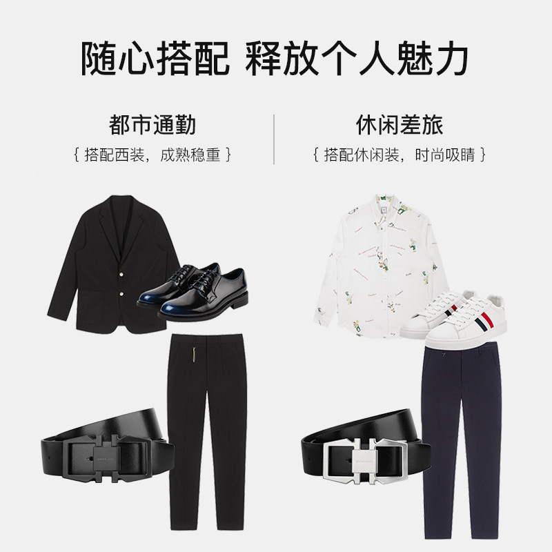 【不锈钢】皮尔卡丹皮带男款真皮不锈钢板扣正品男士腰带新款腰带