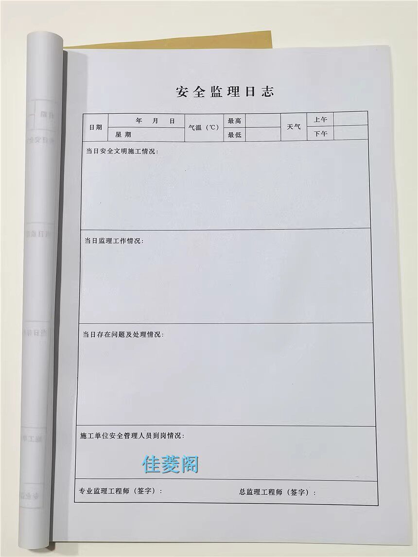 A4安全监理日志施工记录本安全监理本工程施工装修建筑工作记事本