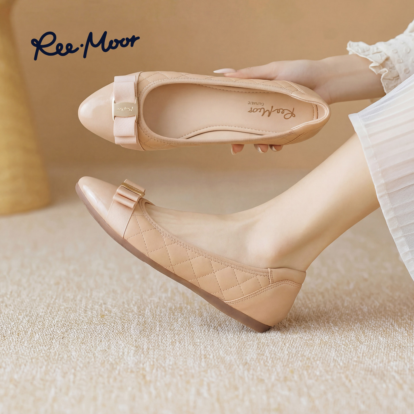 REEMOOR睿慕2026春季新款小香风浅口平底单鞋女格纹舒卷鞋船鞋