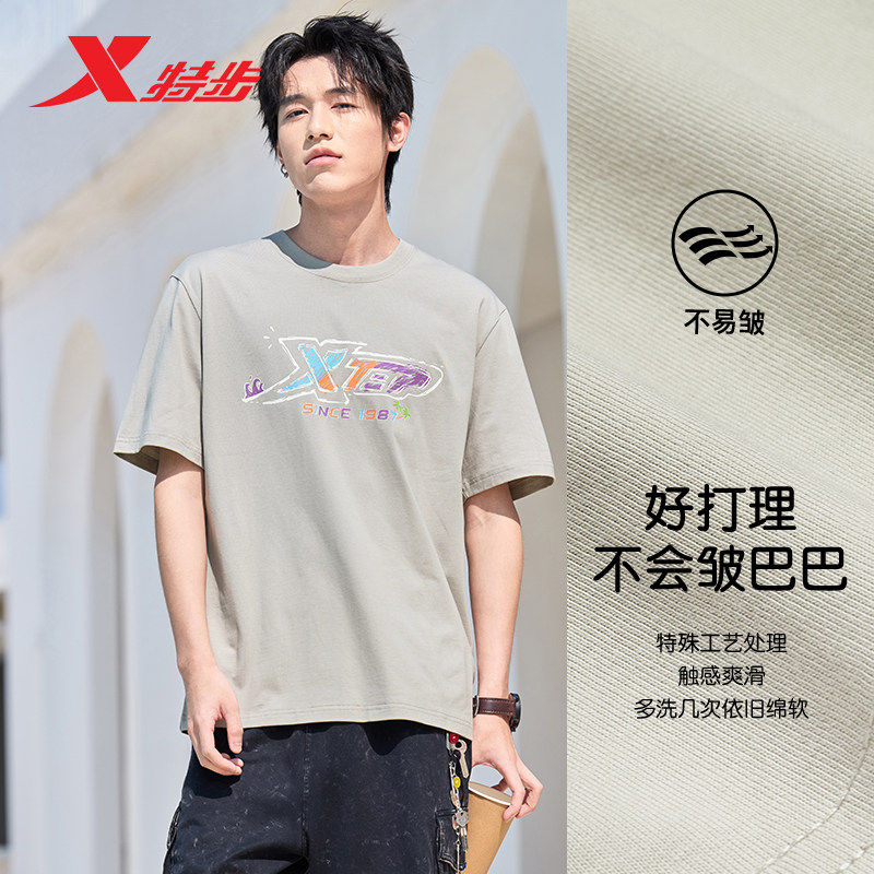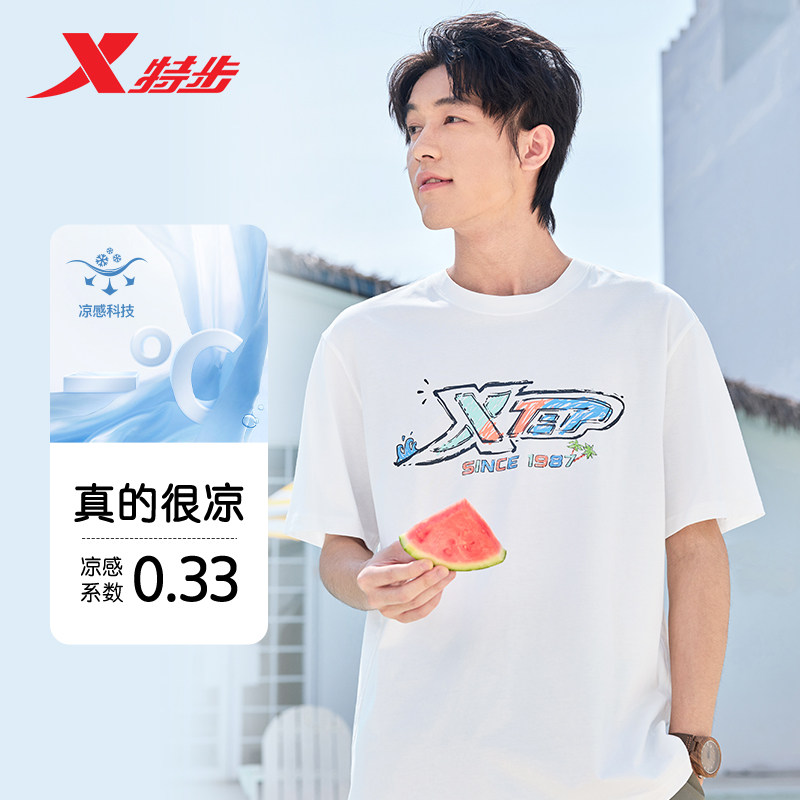 王鹤棣同款丨特步棉T男女2025年新款夏季冰丝T恤情侣半袖运动短袖
