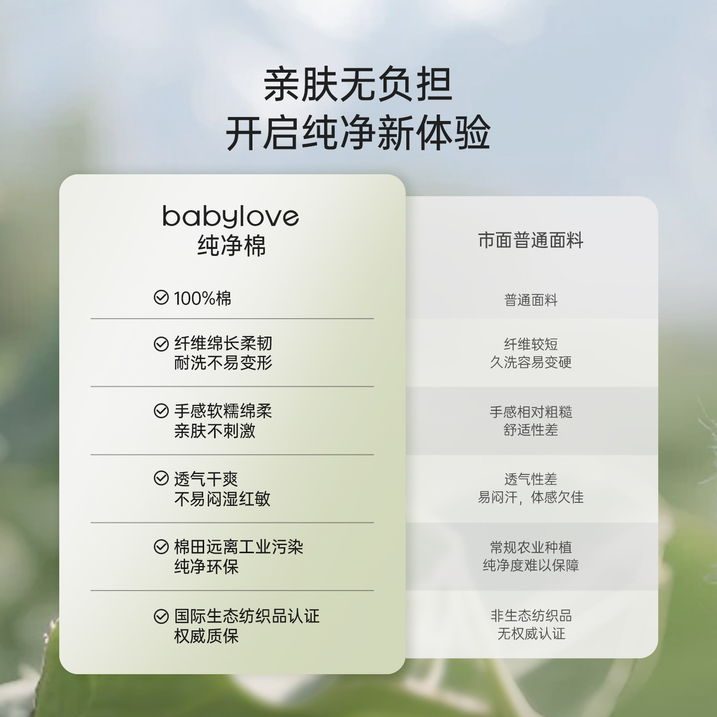 自然纯粹 纯净呵护 100%棉 天然防护力